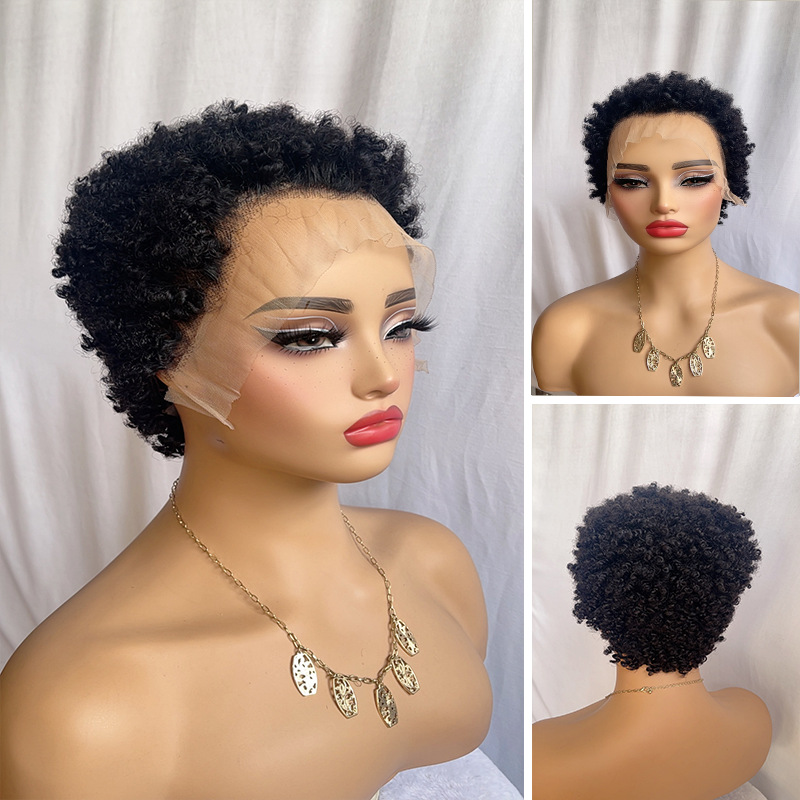 European and American Real Lace Front Wig African Small Curls 13*4 Caterpillar
