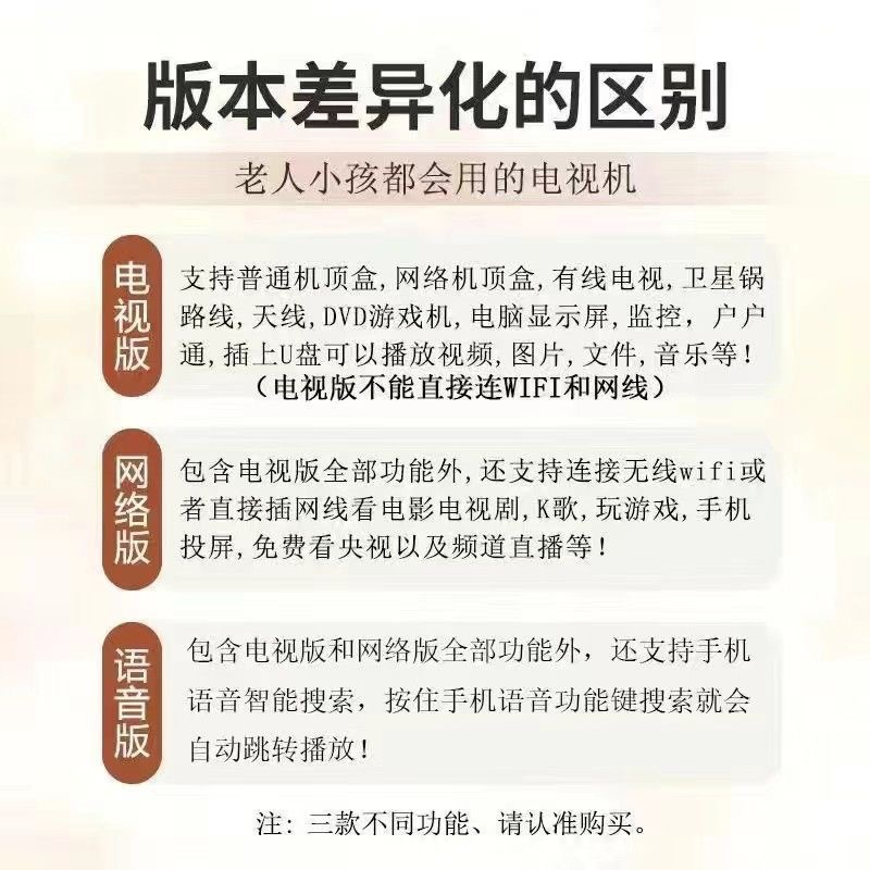 Ordinary tv version [does not support network connection] = comes with base + wall bracket