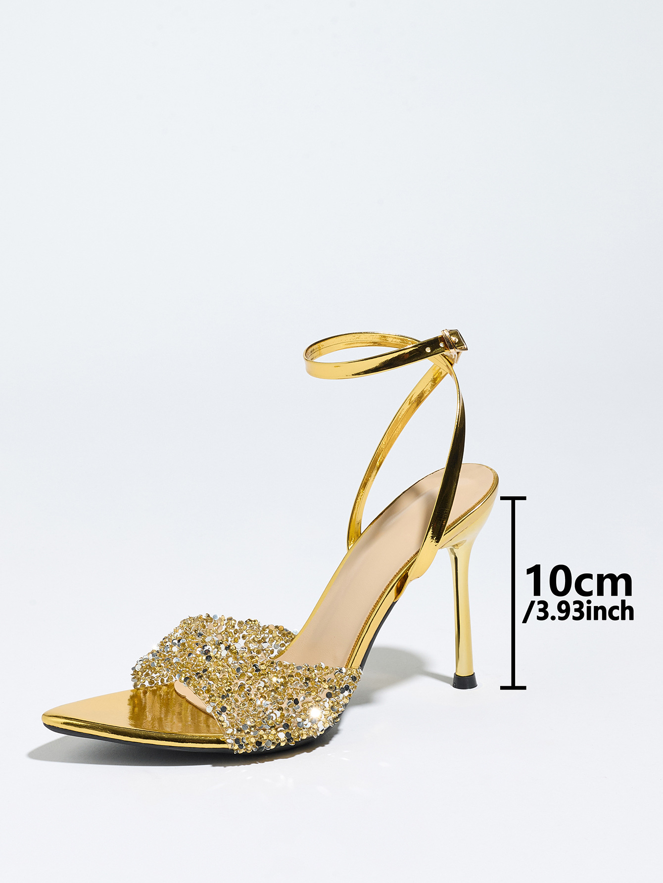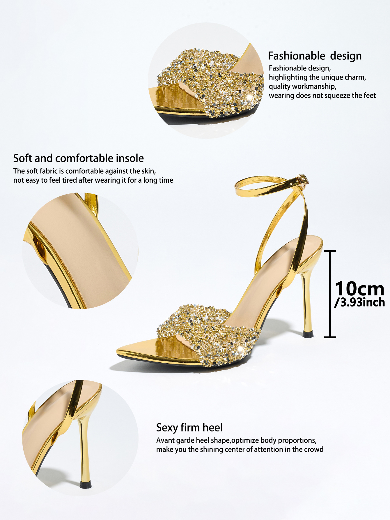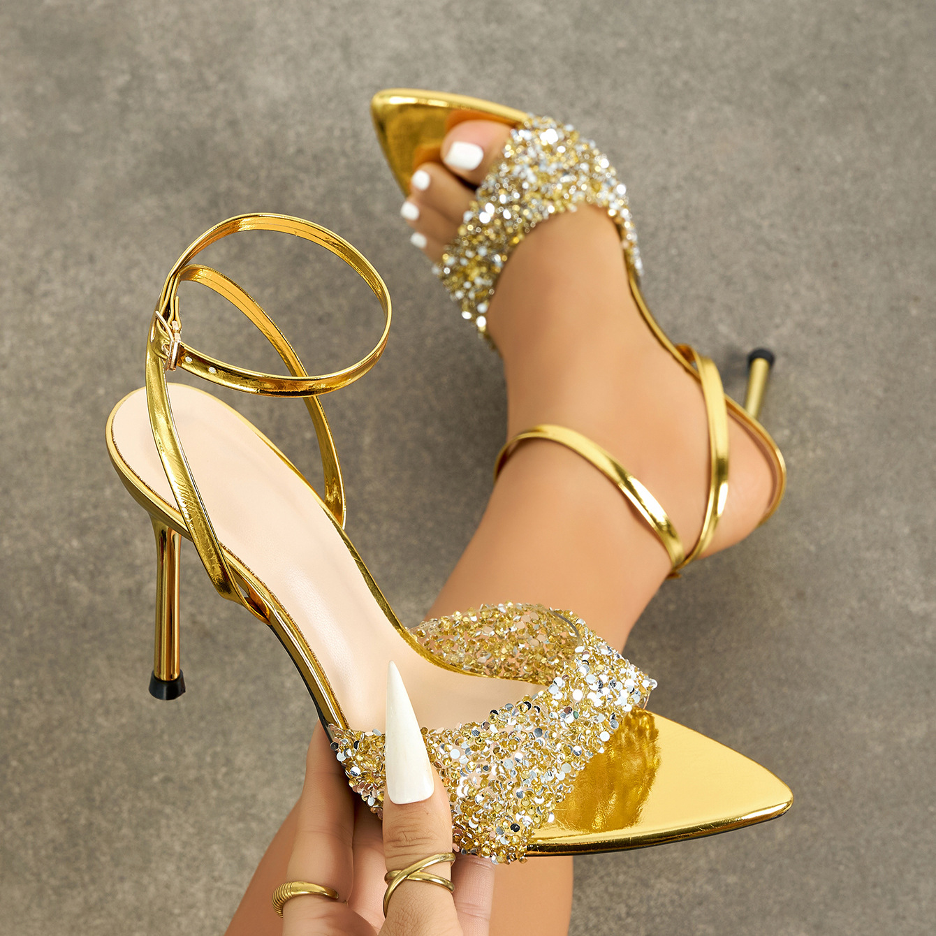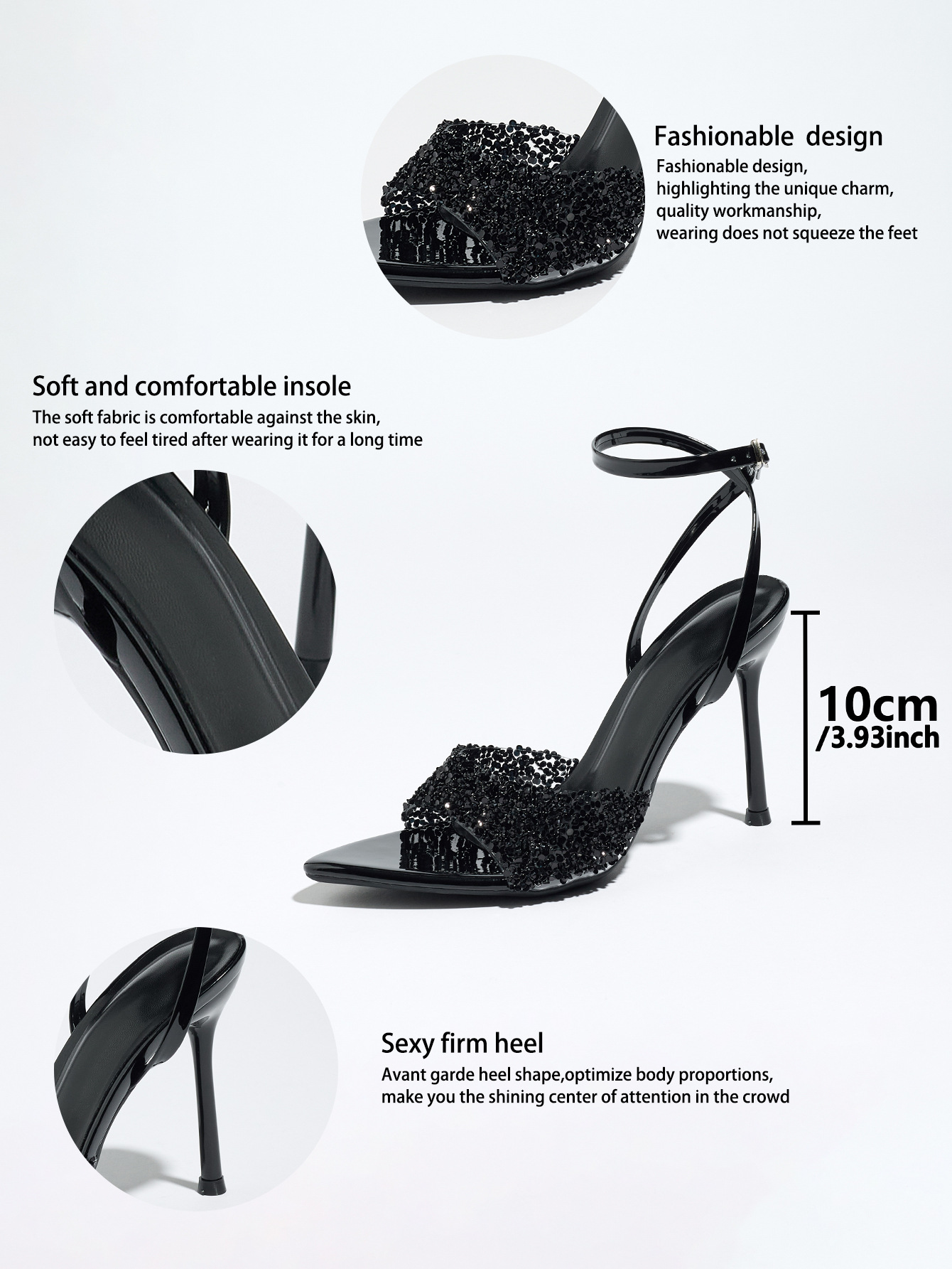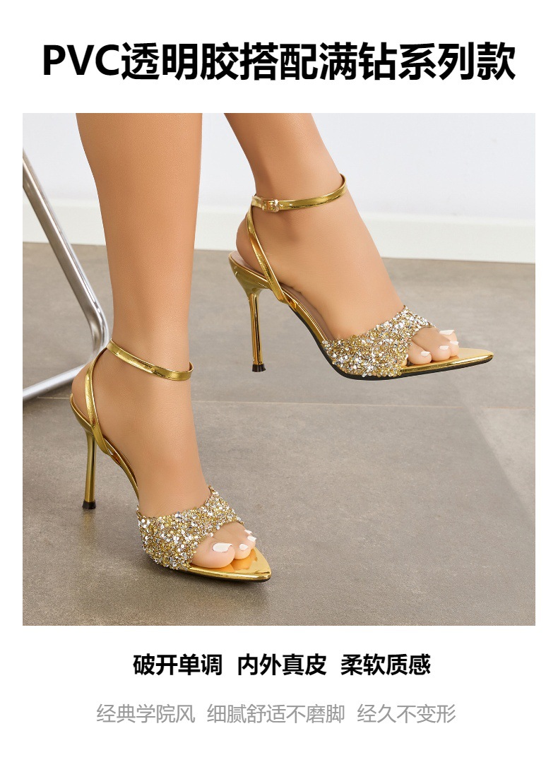 Beautiful High-Heeled Sandals for Women, Sexy Pointed Toe Open-Toe Stiletto Sandals, Pvc Transparent with Full Diamonds
