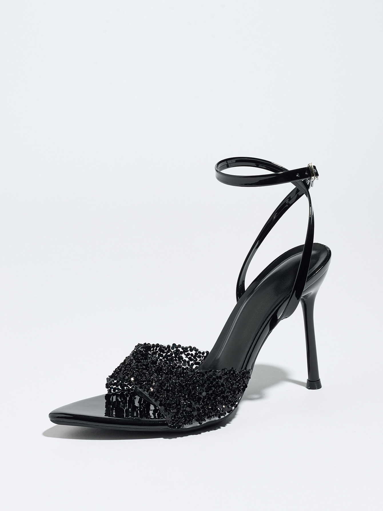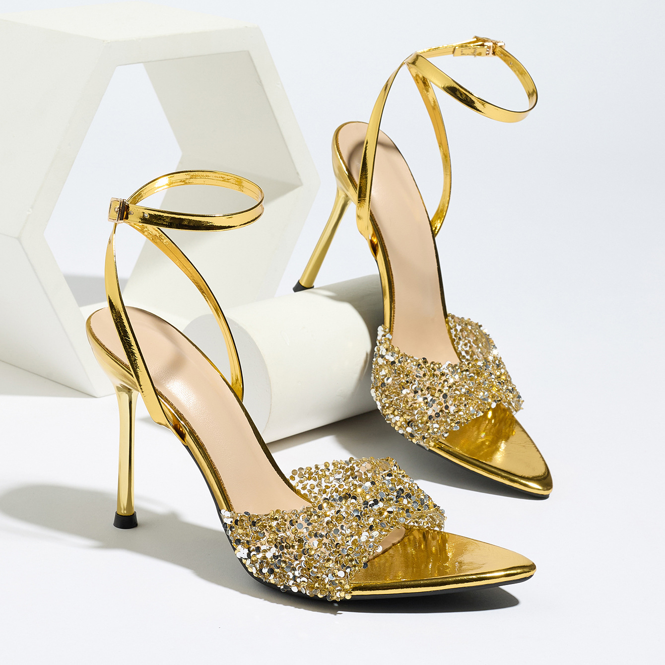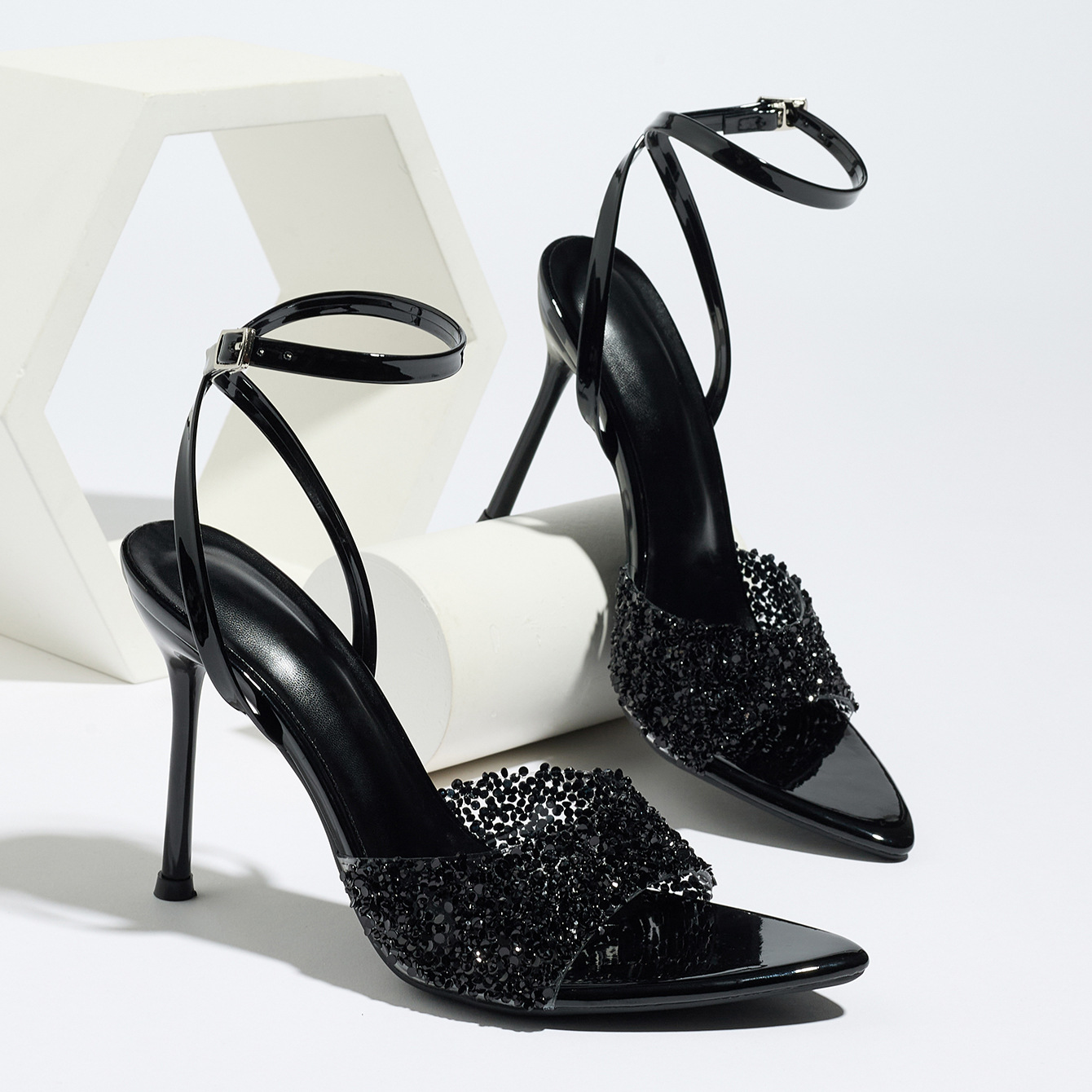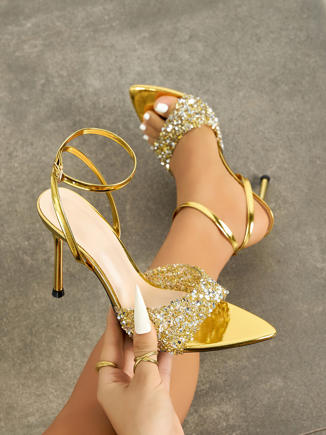 Beautiful High-Heeled Sandals for Women, Sexy Pointed Toe Open-Toe Stiletto Sandals, Pvc Transparent with Full Diamonds