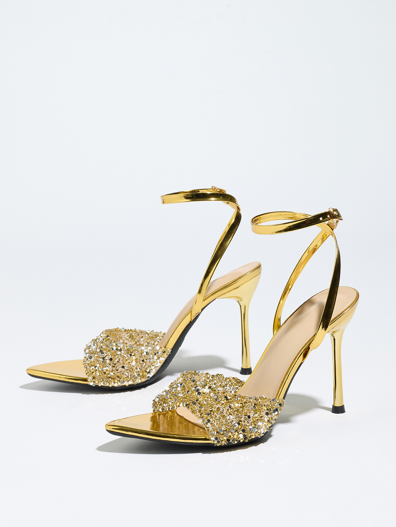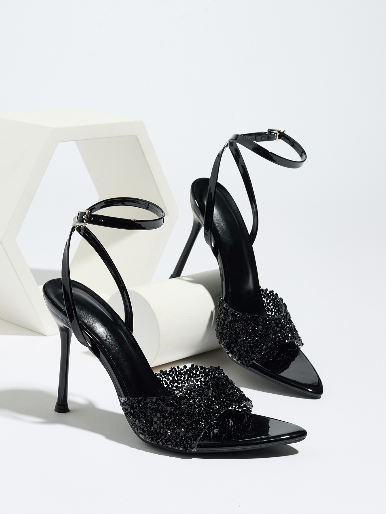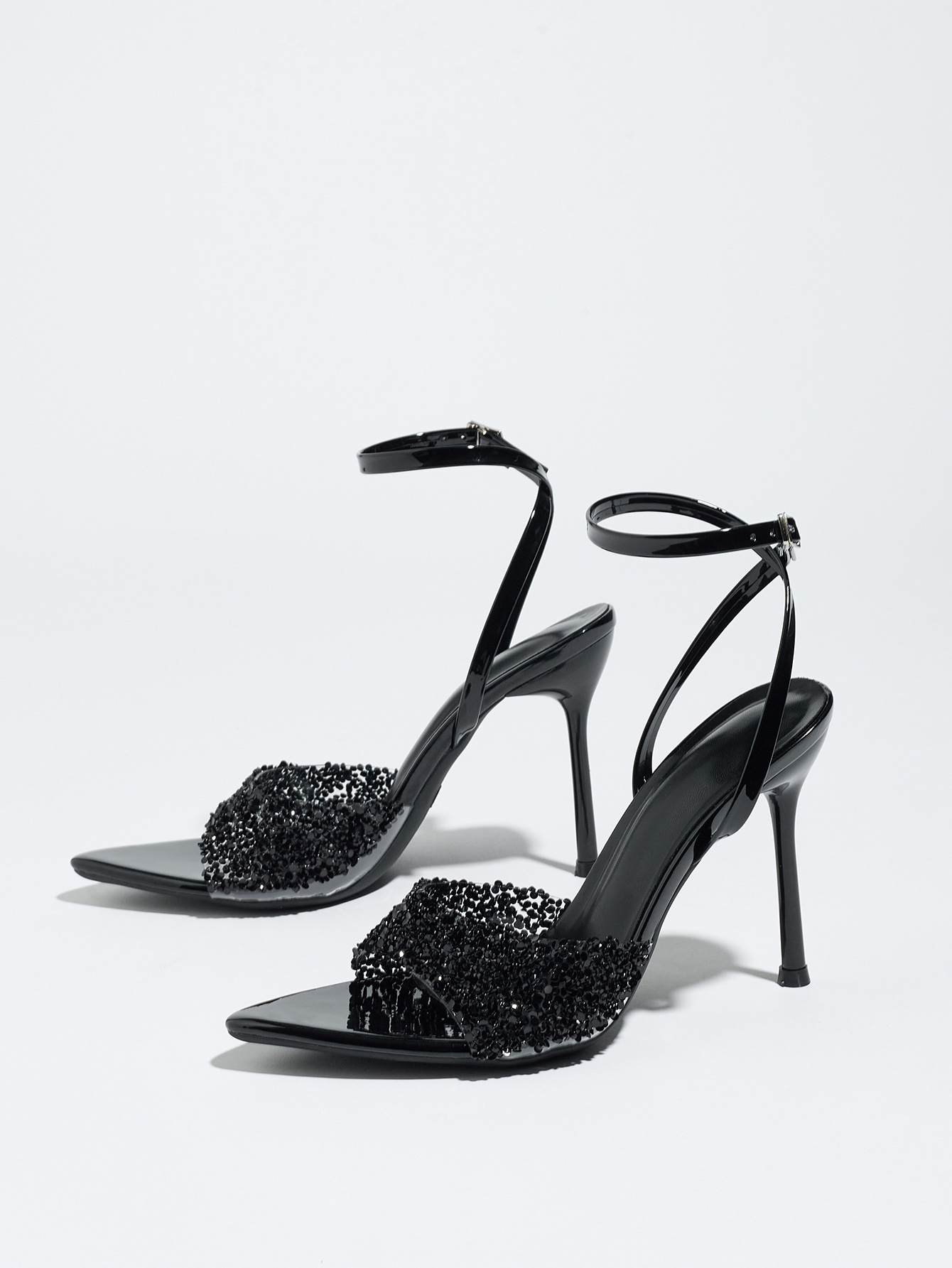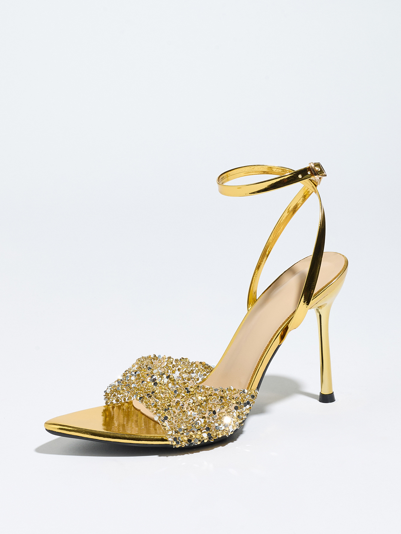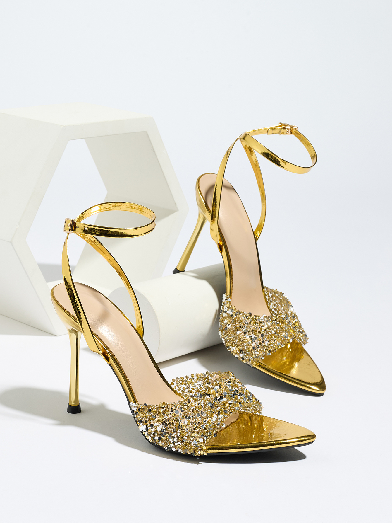 Beautiful High-Heeled Sandals for Women, Sexy Pointed Toe Open-Toe Stiletto Sandals, Pvc Transparent with Full Diamonds