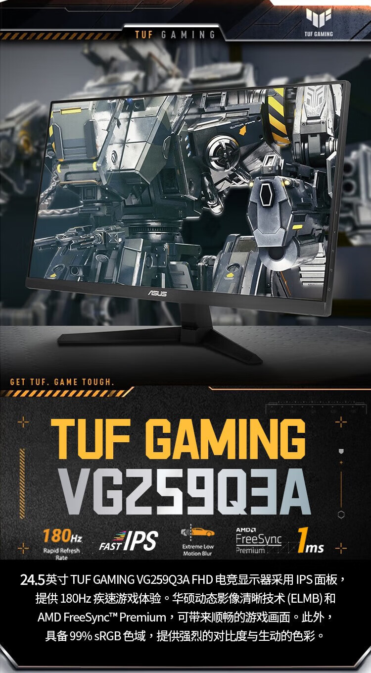 Tuf Vg259Q3A 24.5-Inch 180Hz Desktop Computer Game E-Sports Office Monitor Lcd Screen
