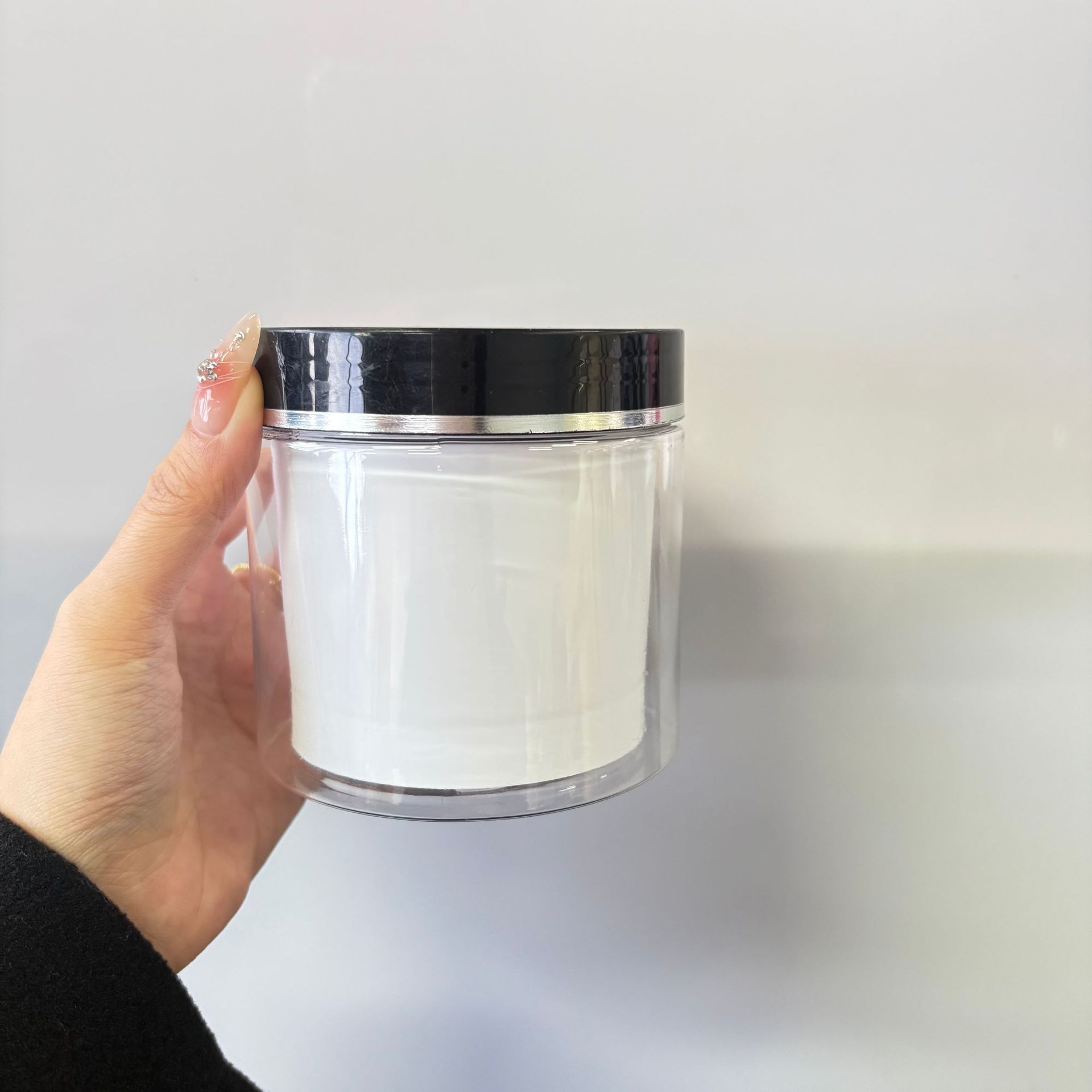 200g; white liner, black lid, silver edge; pet