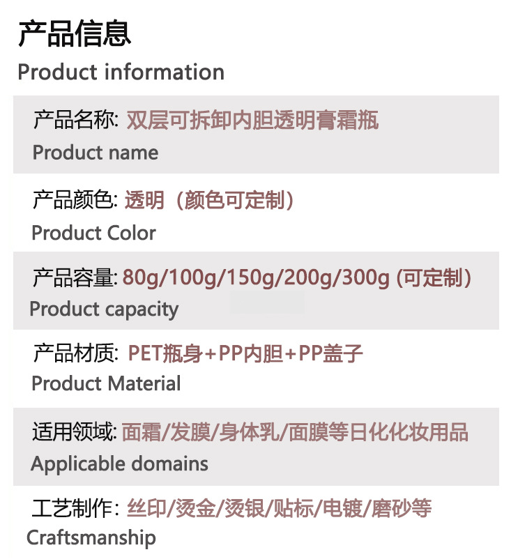 100g; white liner with rose red lid and hot stamping edge; pet