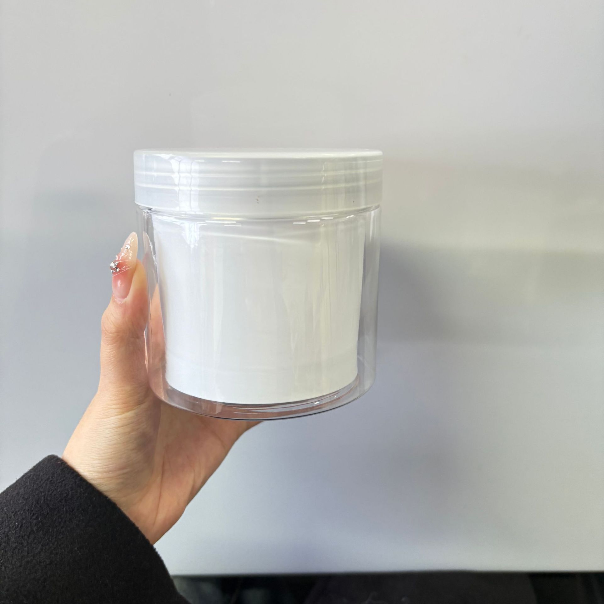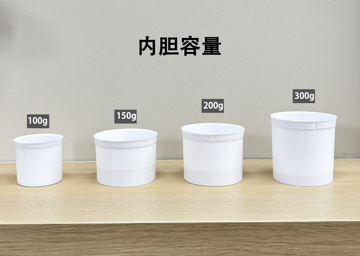 300g; white liner, black lid; pet