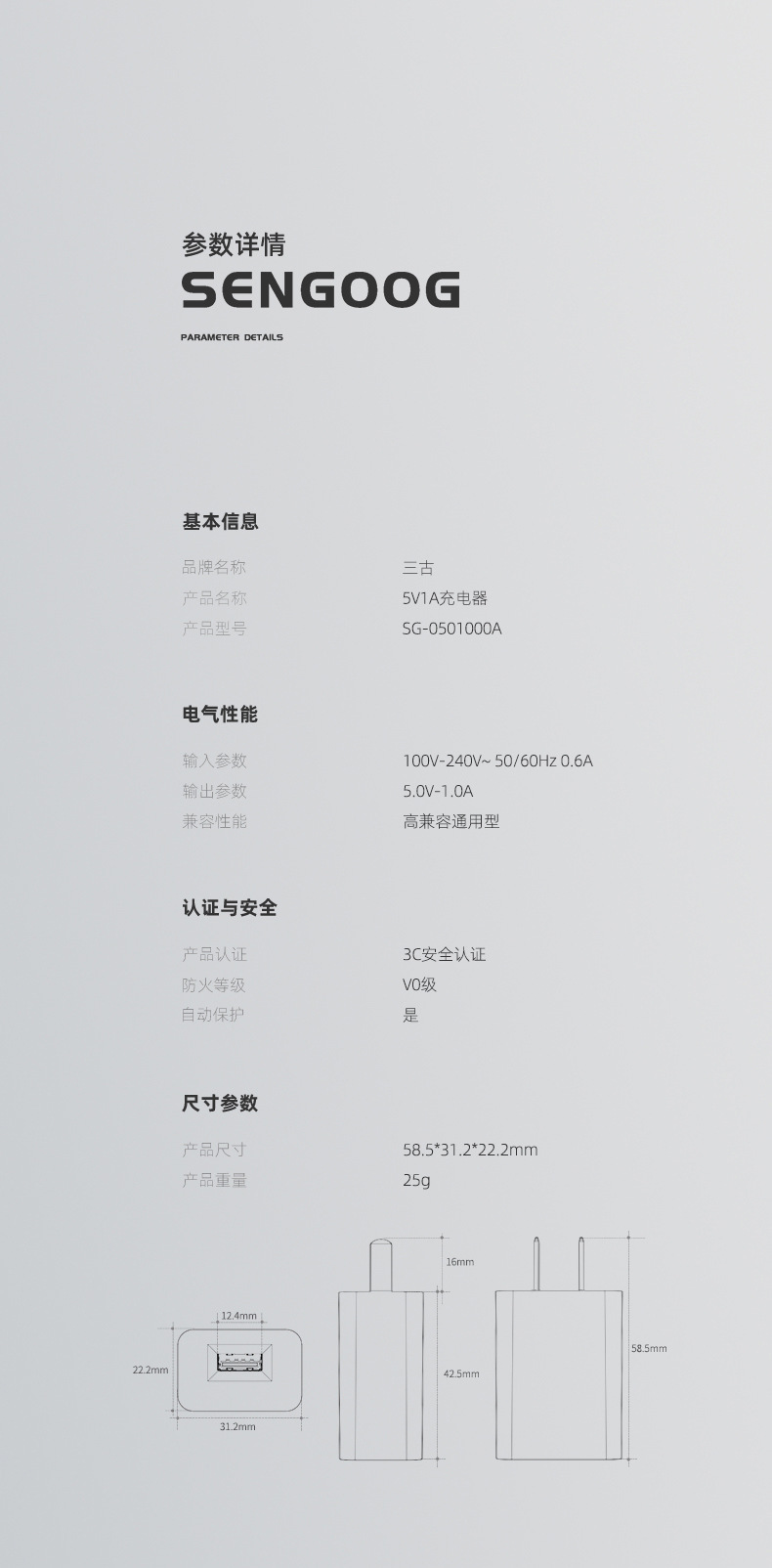 National standard (china) 5v1a+ packaging