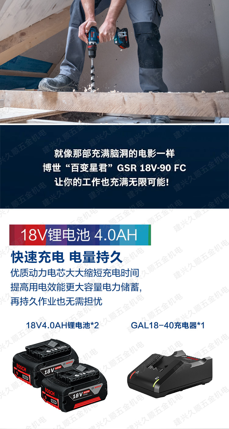 GSR 18V-90 FC (two electricity and one charge 4.0AH)