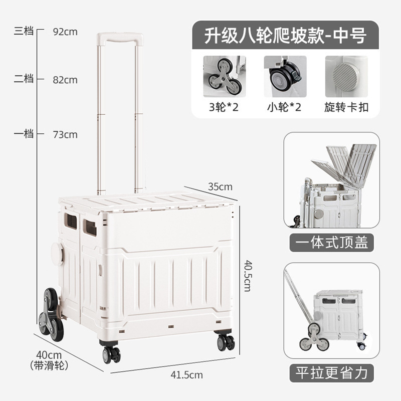 [Upgrade eight-wheel climbing model] white medium 50L thick with cover