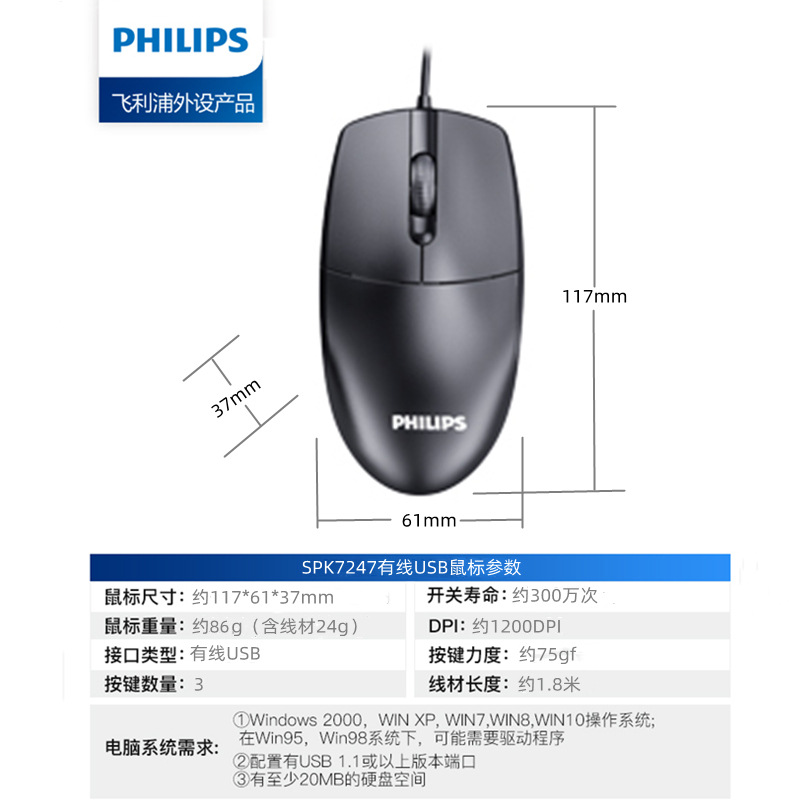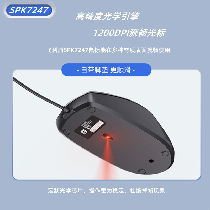 Philips Spk7247 Notebook Desktop Computer USB Wired Mouse Business Office Home Gaming Mouse