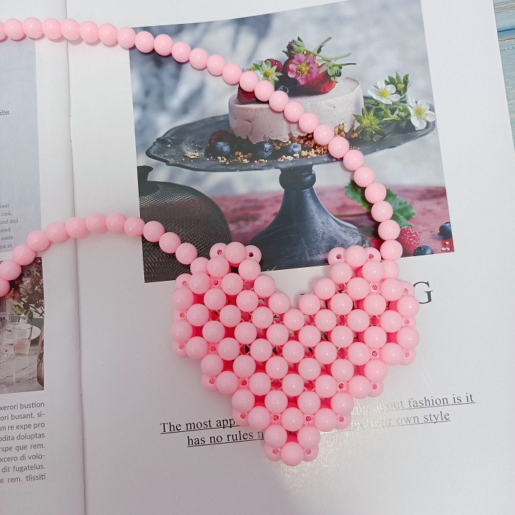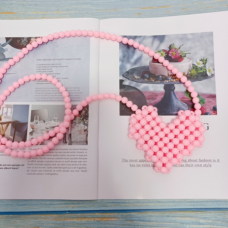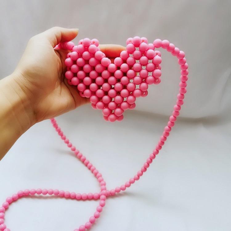 桃心形串珠包,采用精抛光的糖果实色i珠子,只能装下口红和可爱之类的又一款凹造型的包包