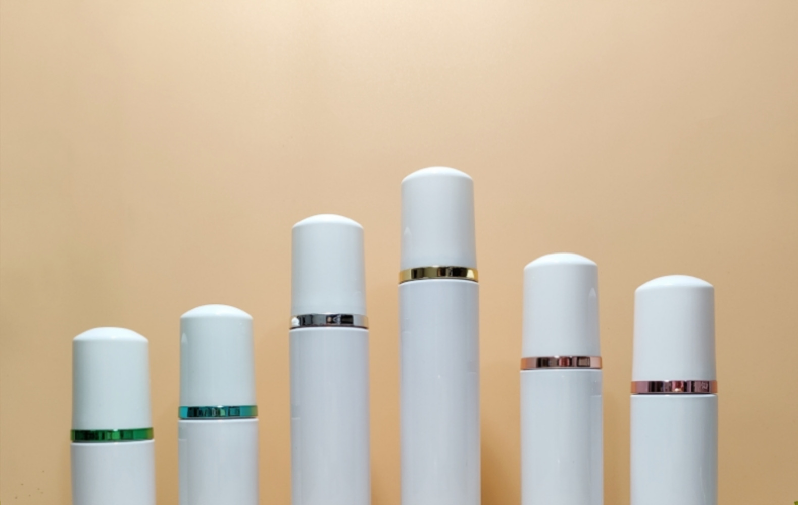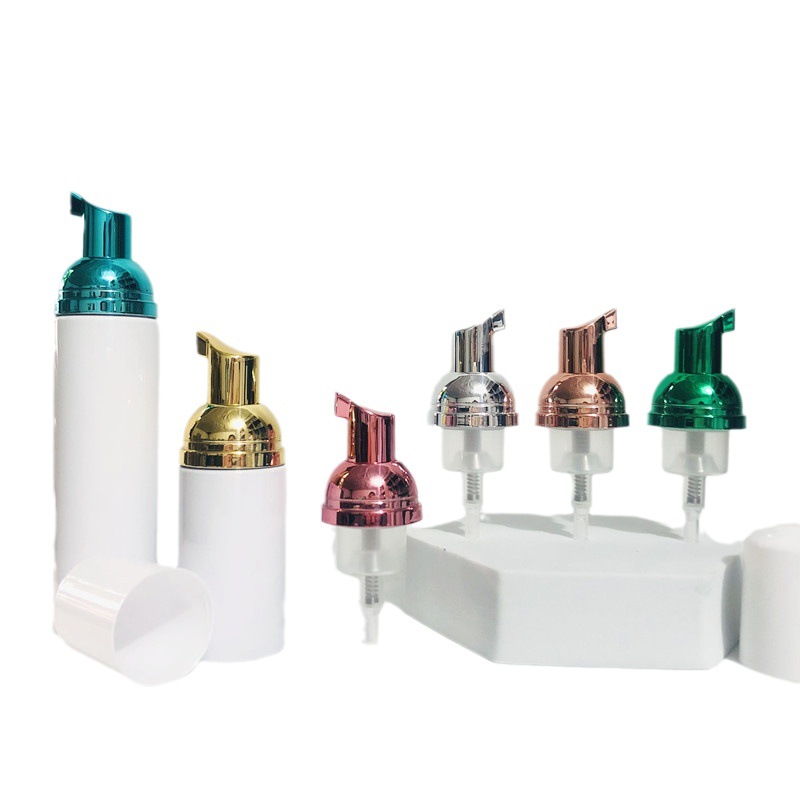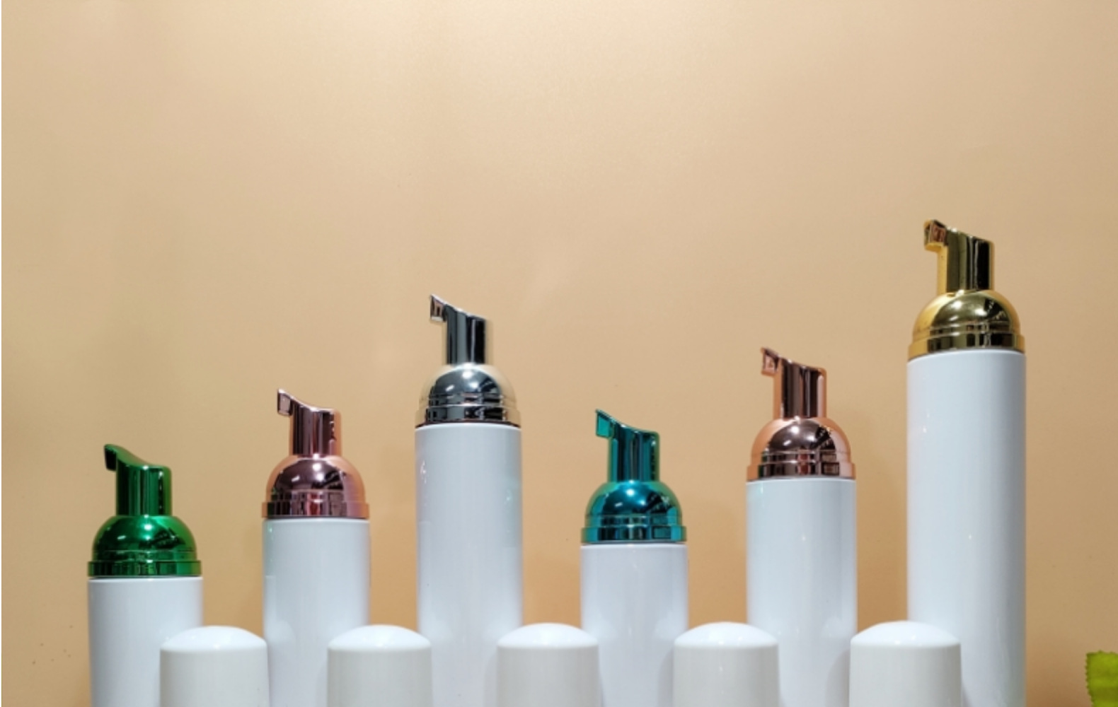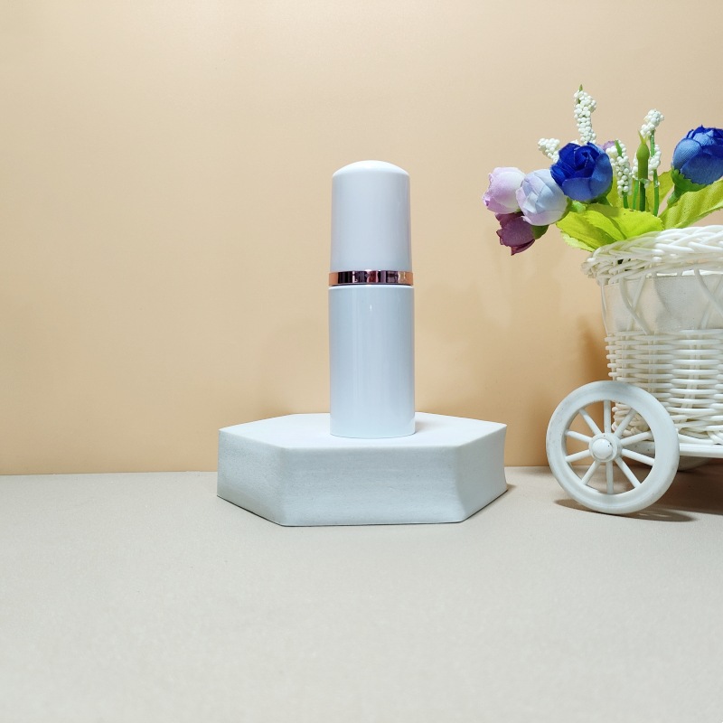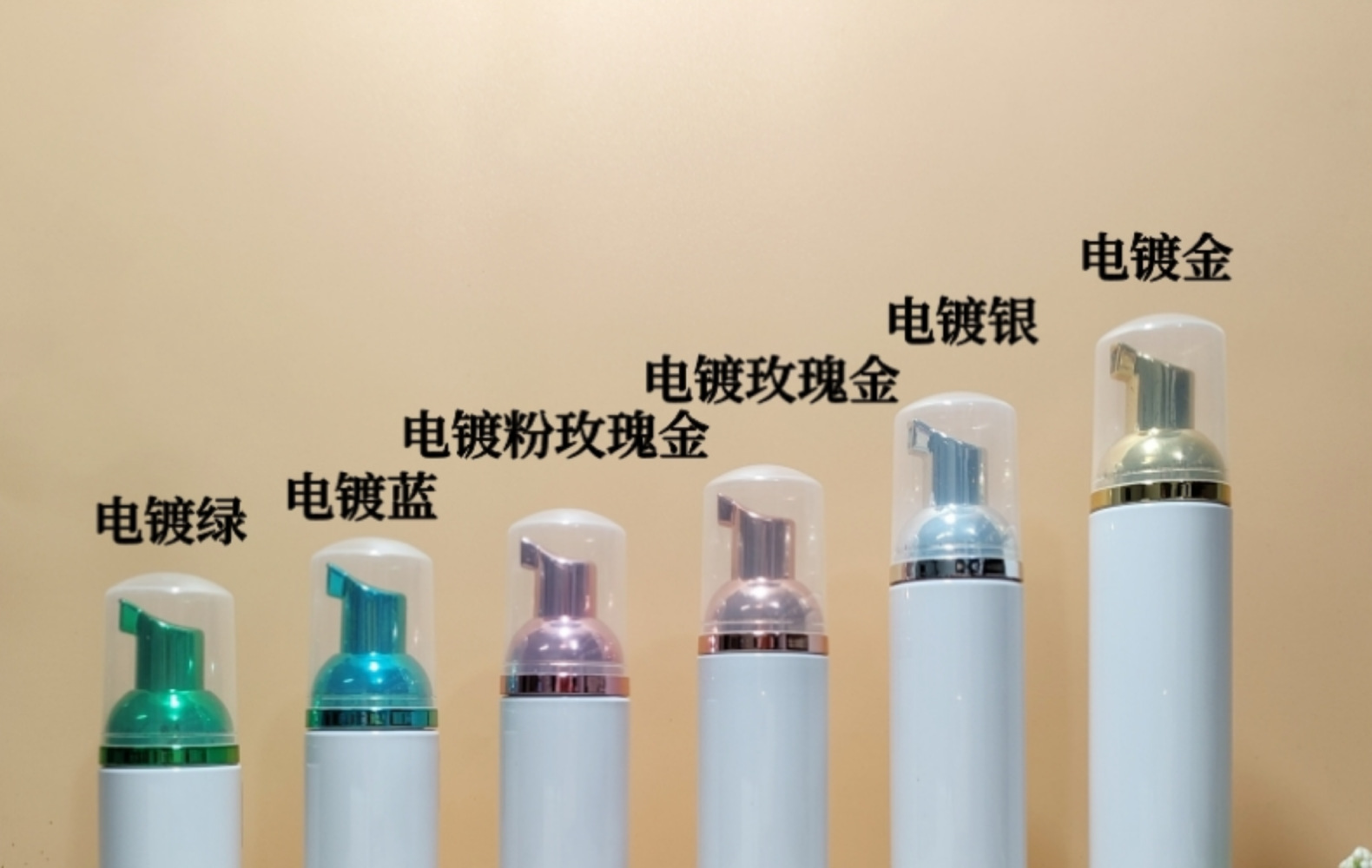 White bottle + electroplating rose gold pump + transparent frosted cover