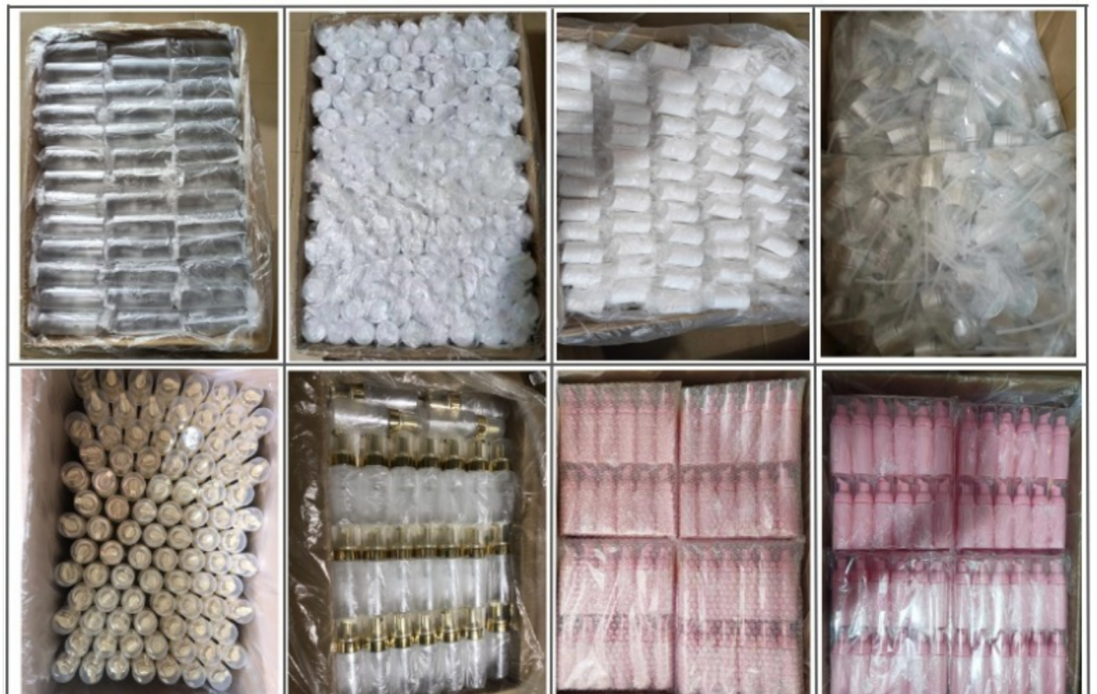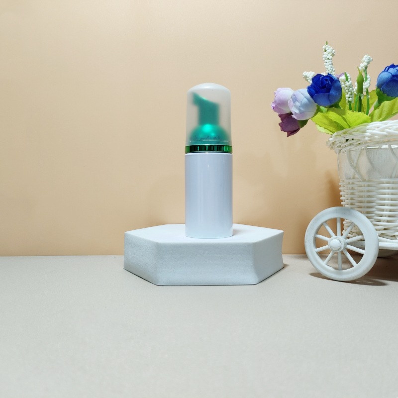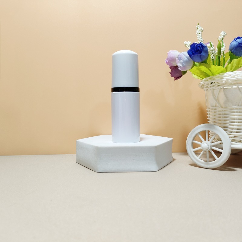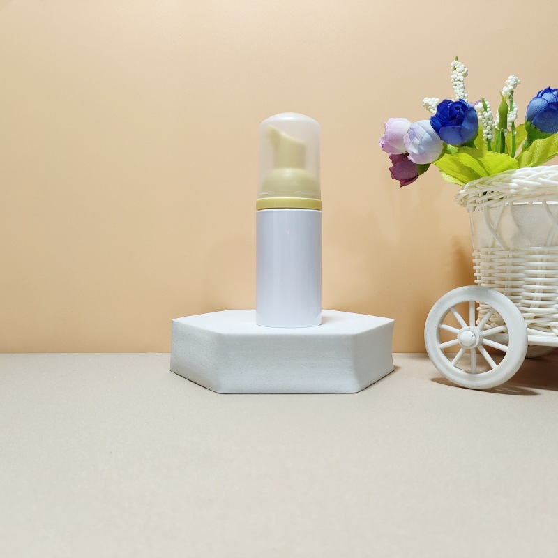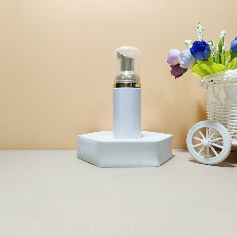 White bottle + electroplating rose gold pump + transparent frosted cover