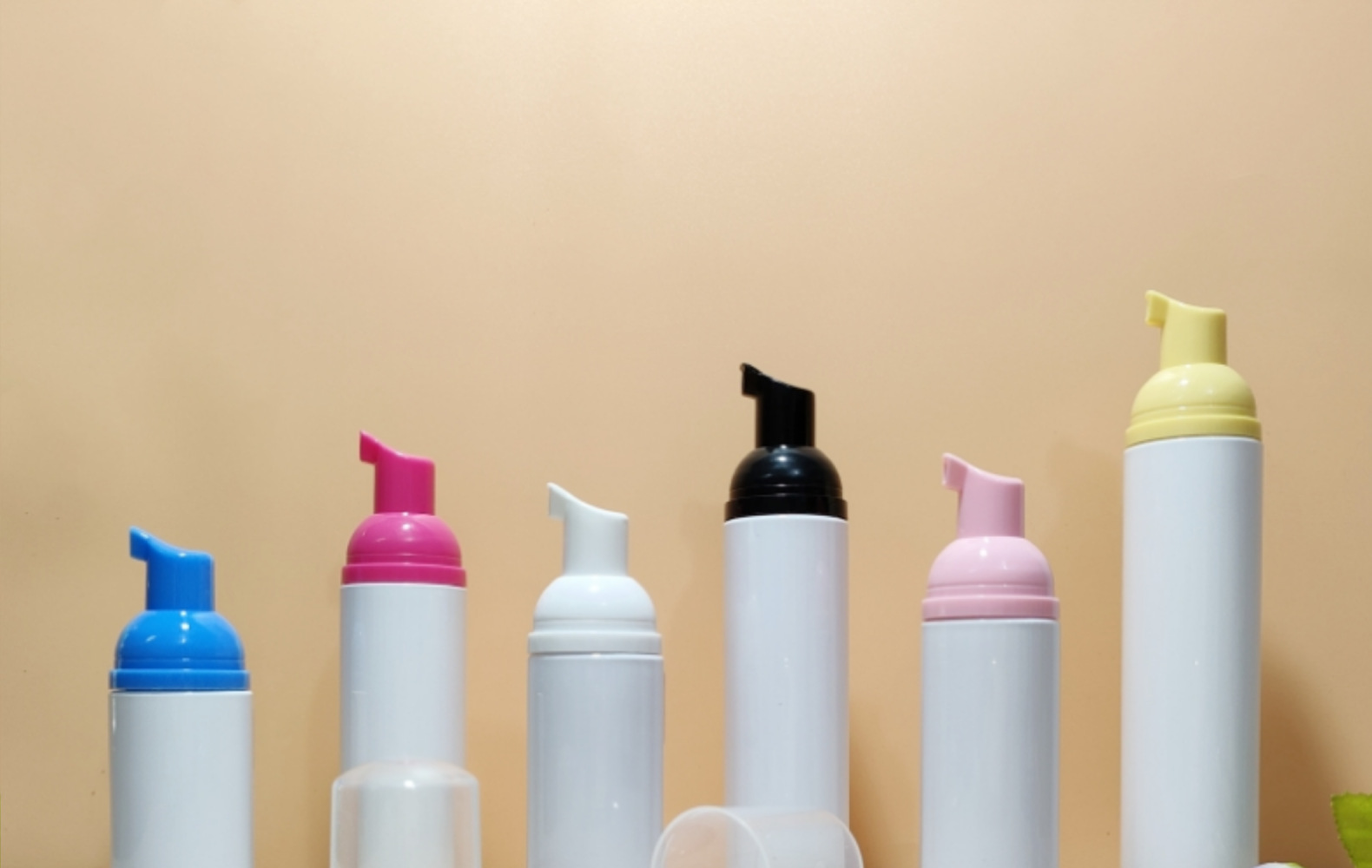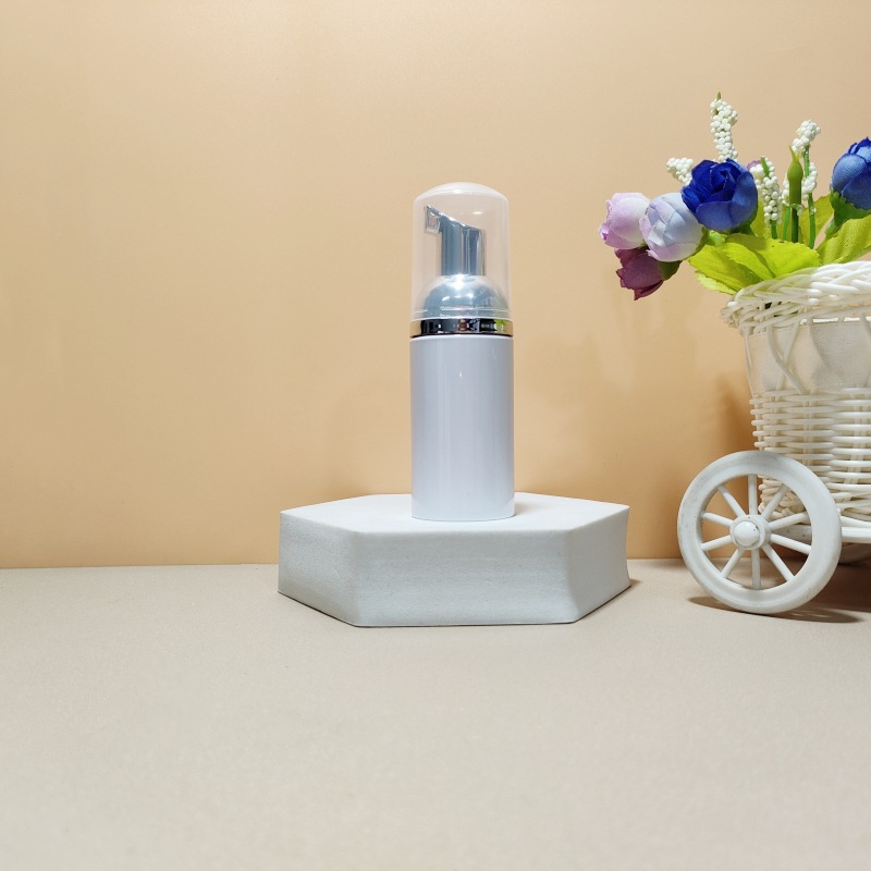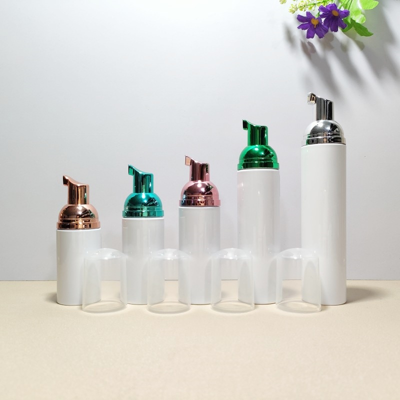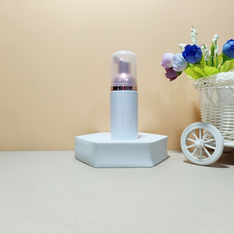 White Bottle + Electroplated Powder Rose Gold Pump + Transparent Frosted Cover