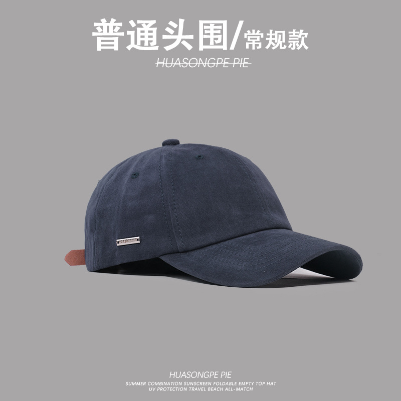 C0019 front pure side silver leather buckle baseball cap navy blue