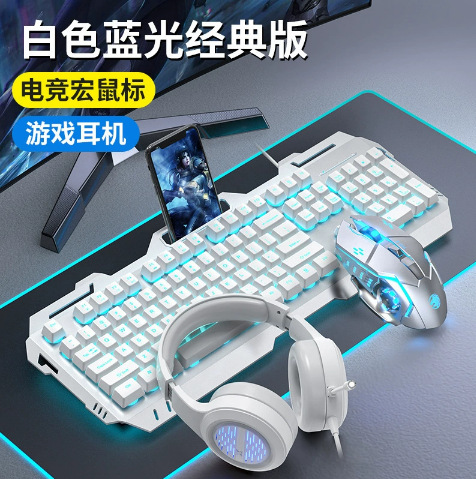 Silver black ice blue hand holder version [3-piece set-upgrade version]_macro mouse_headset