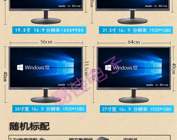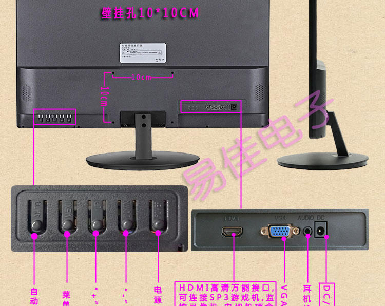 19-inch monitor (VGA interface + HDMI) black + official standard