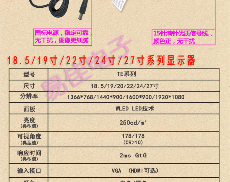 22 inch display (VGA interface) White + official standard