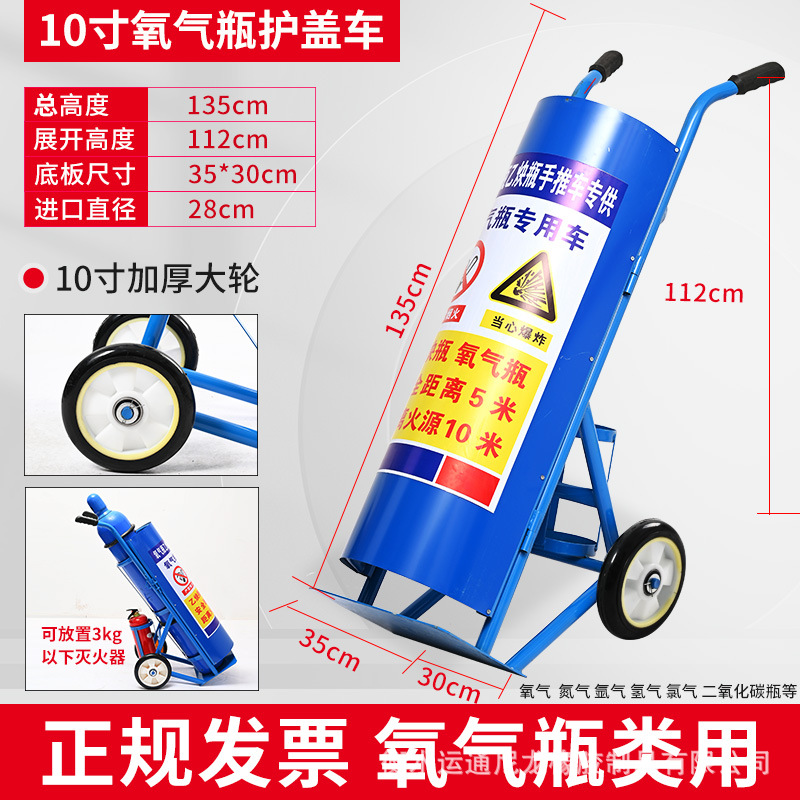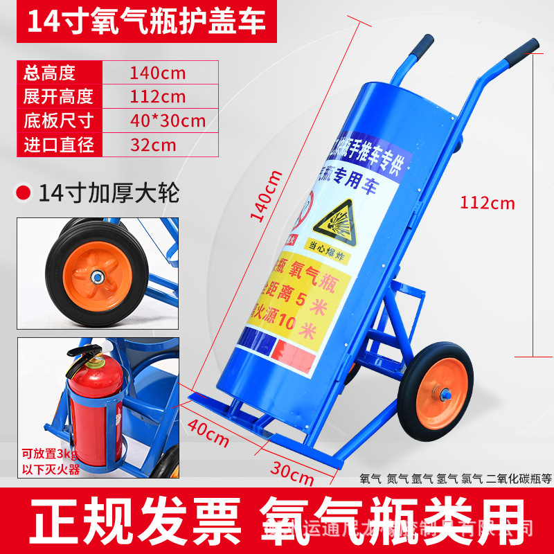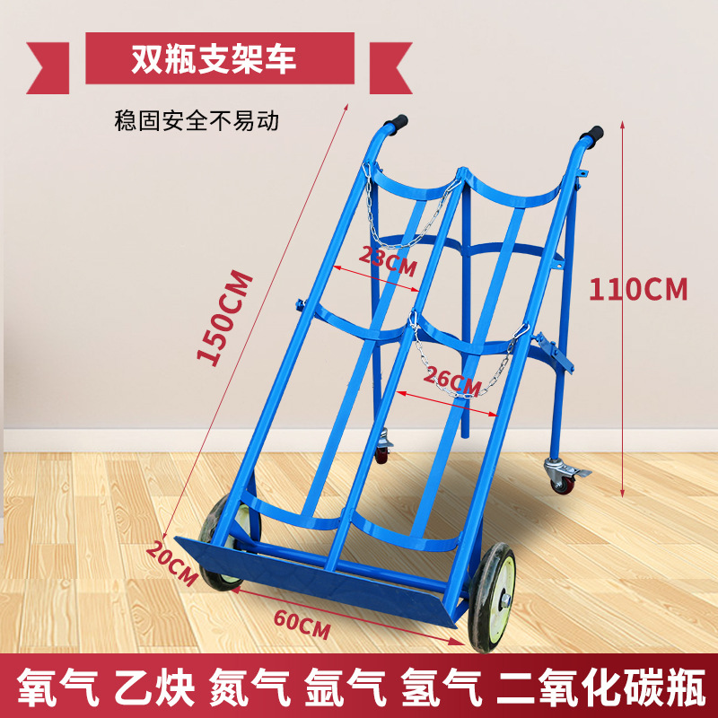 Thickened blue four-wheel cover oxygen bottle trolley