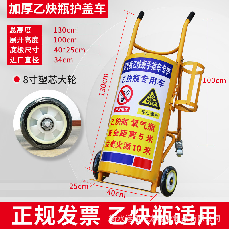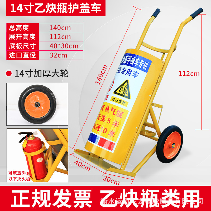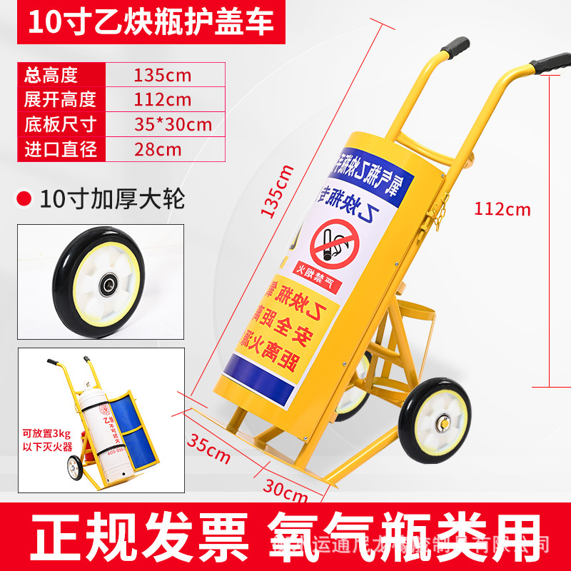 Thickened yellow four-wheel cover acetylene bottle trolley