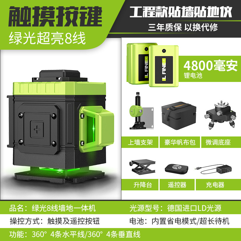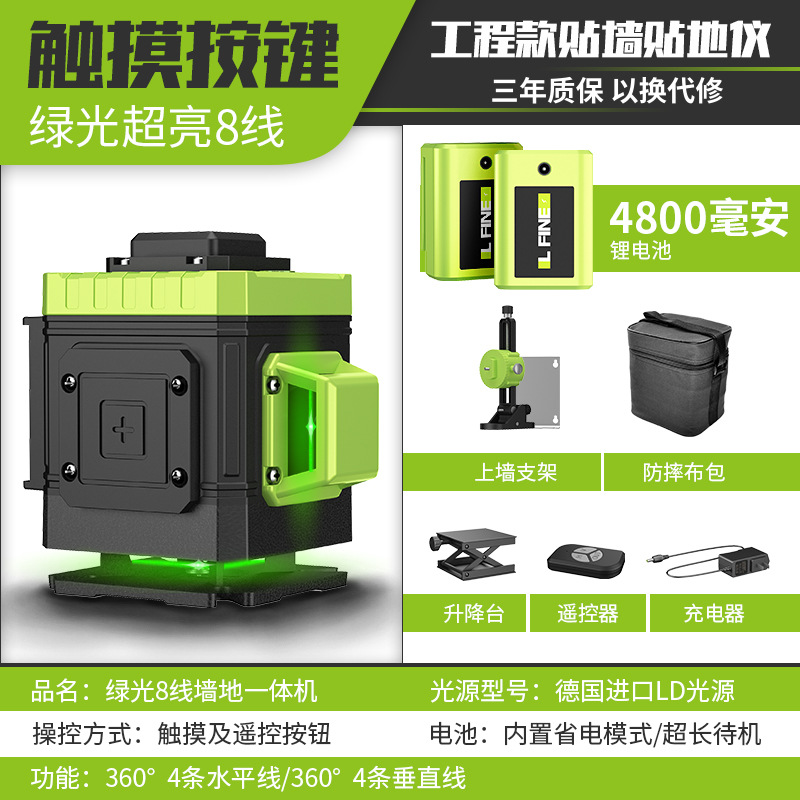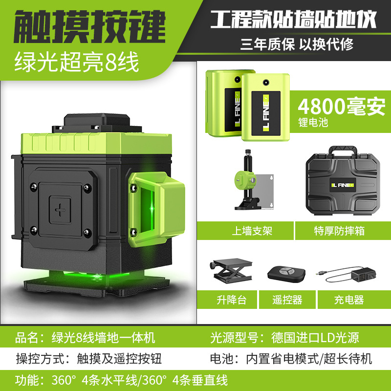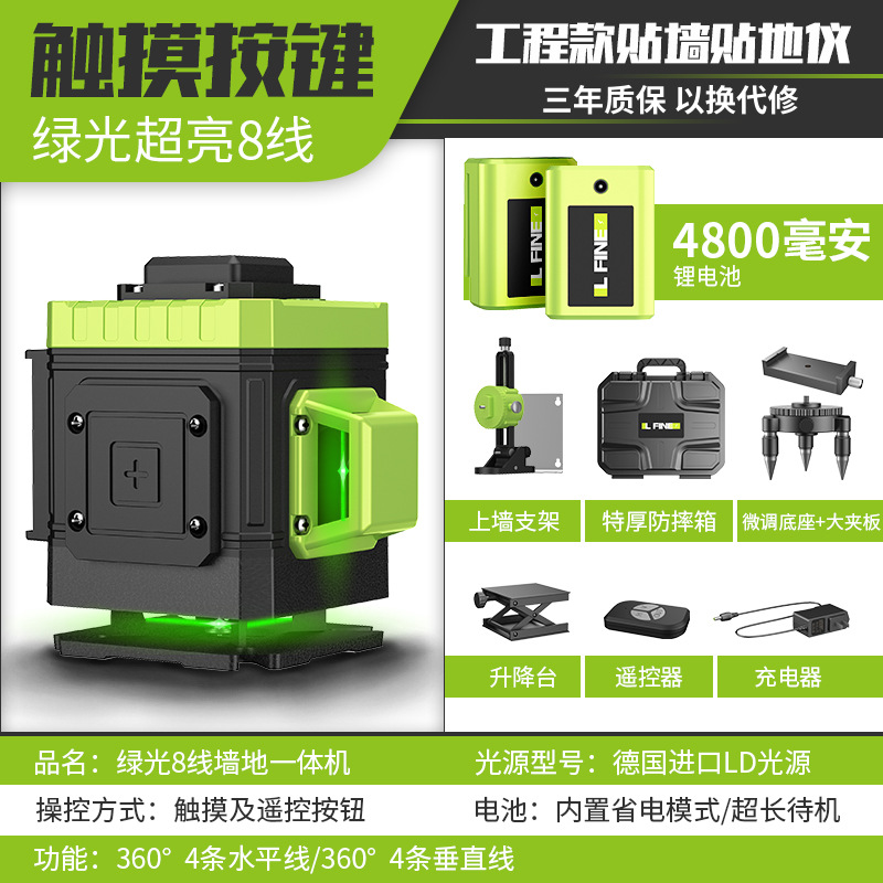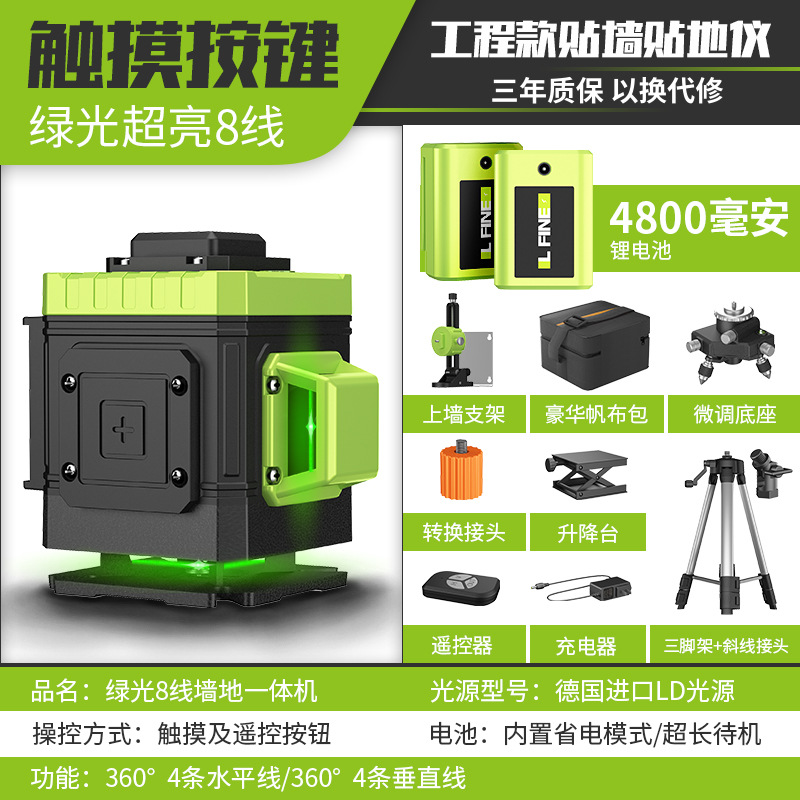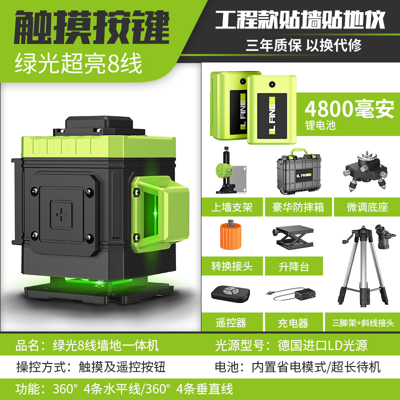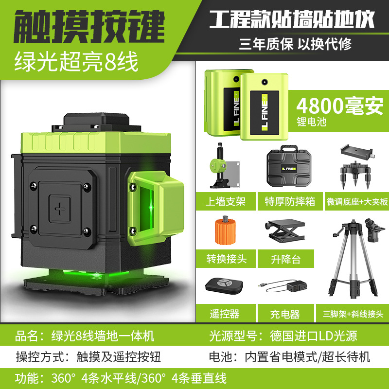 Green light 8 line [luxury plastic box + large aluminum bottom + tripod]]