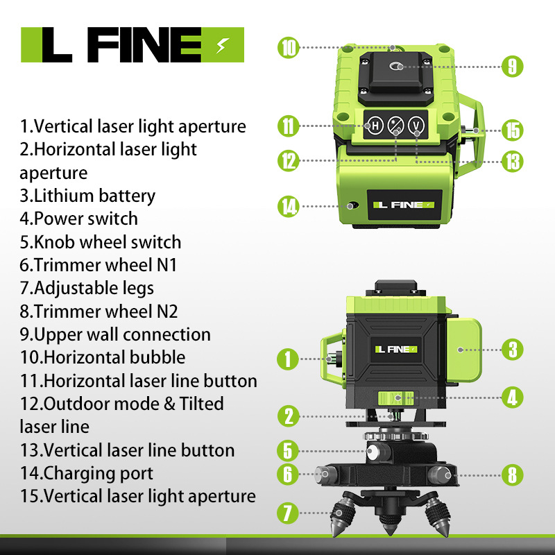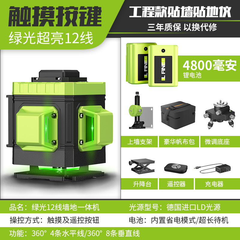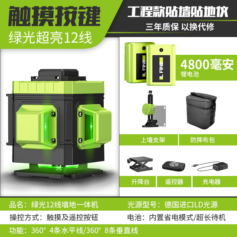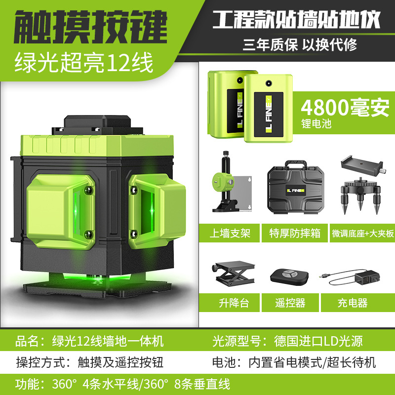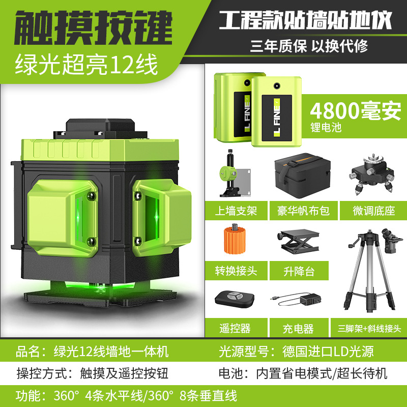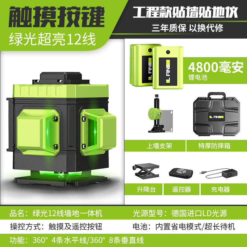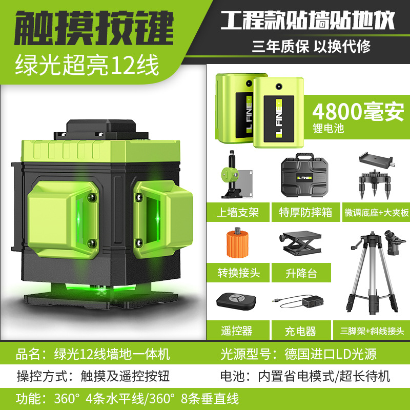 Green light 12 line [luxury plastic box + large aluminum bottom + tripod]]