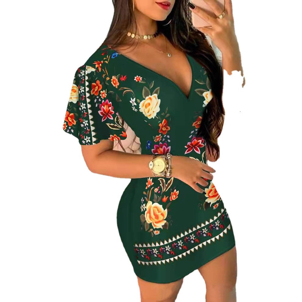 2025 Cross-Border European and American Ebay Independent Site Spring and Summer Women's Clothing Sexy Deep V Short-Sleeved Bodycon Dress Sexy Style