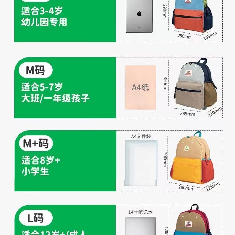 M+ [ages 5-9, fits a4 books] (recommended for heights 120-150cm)