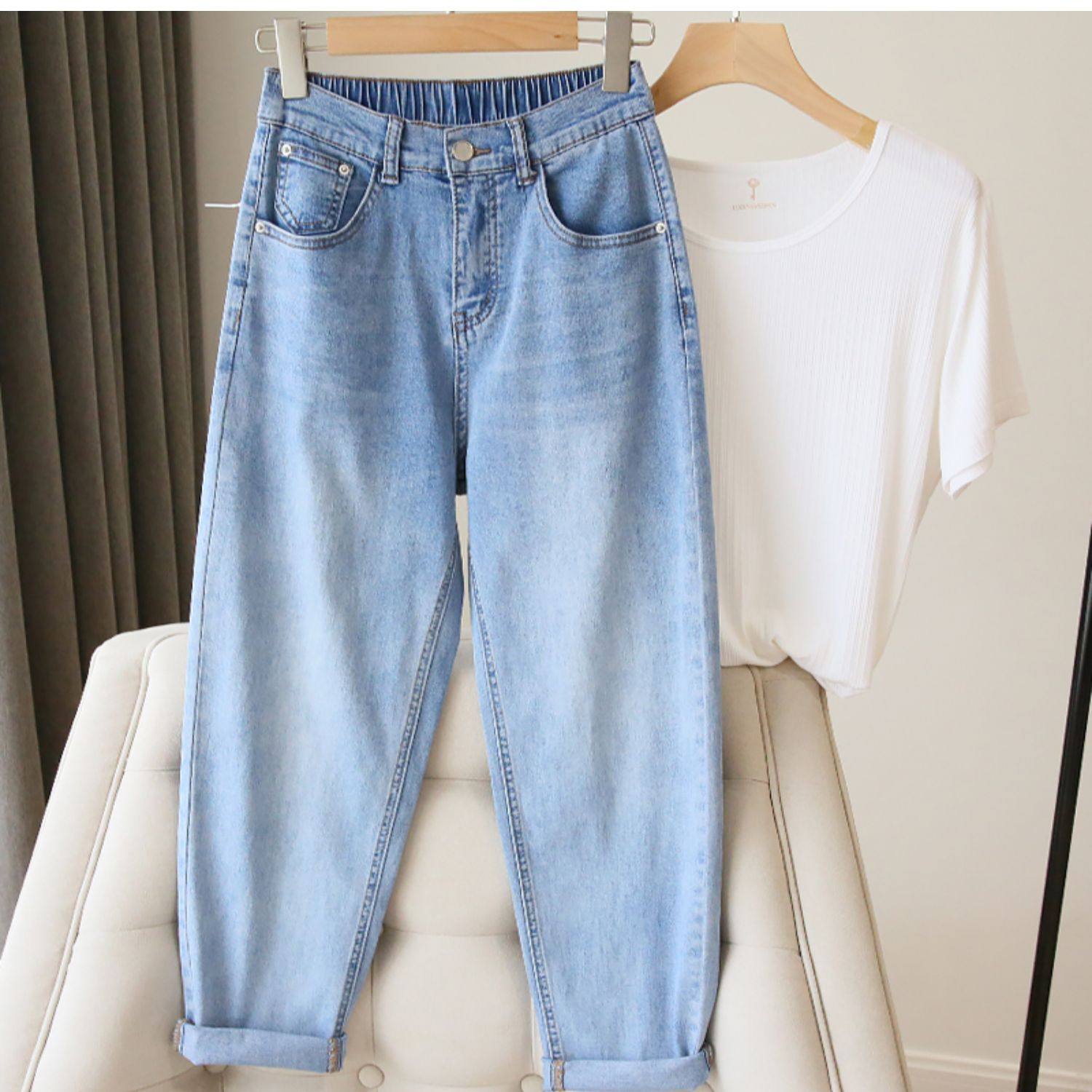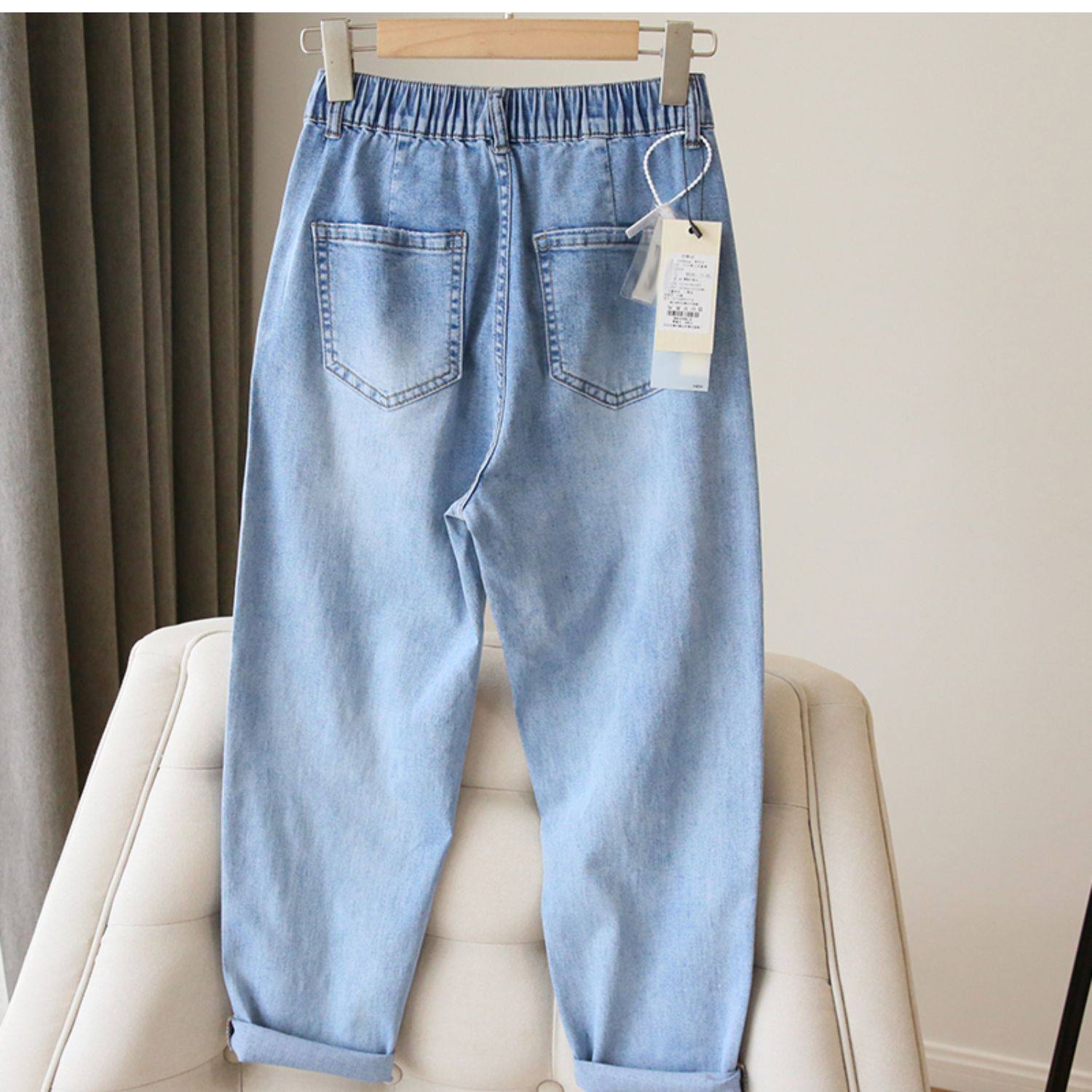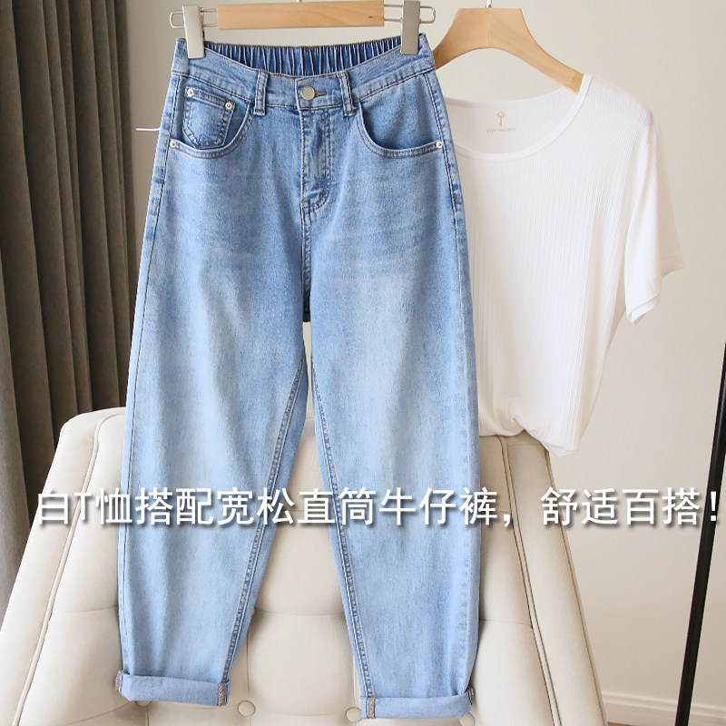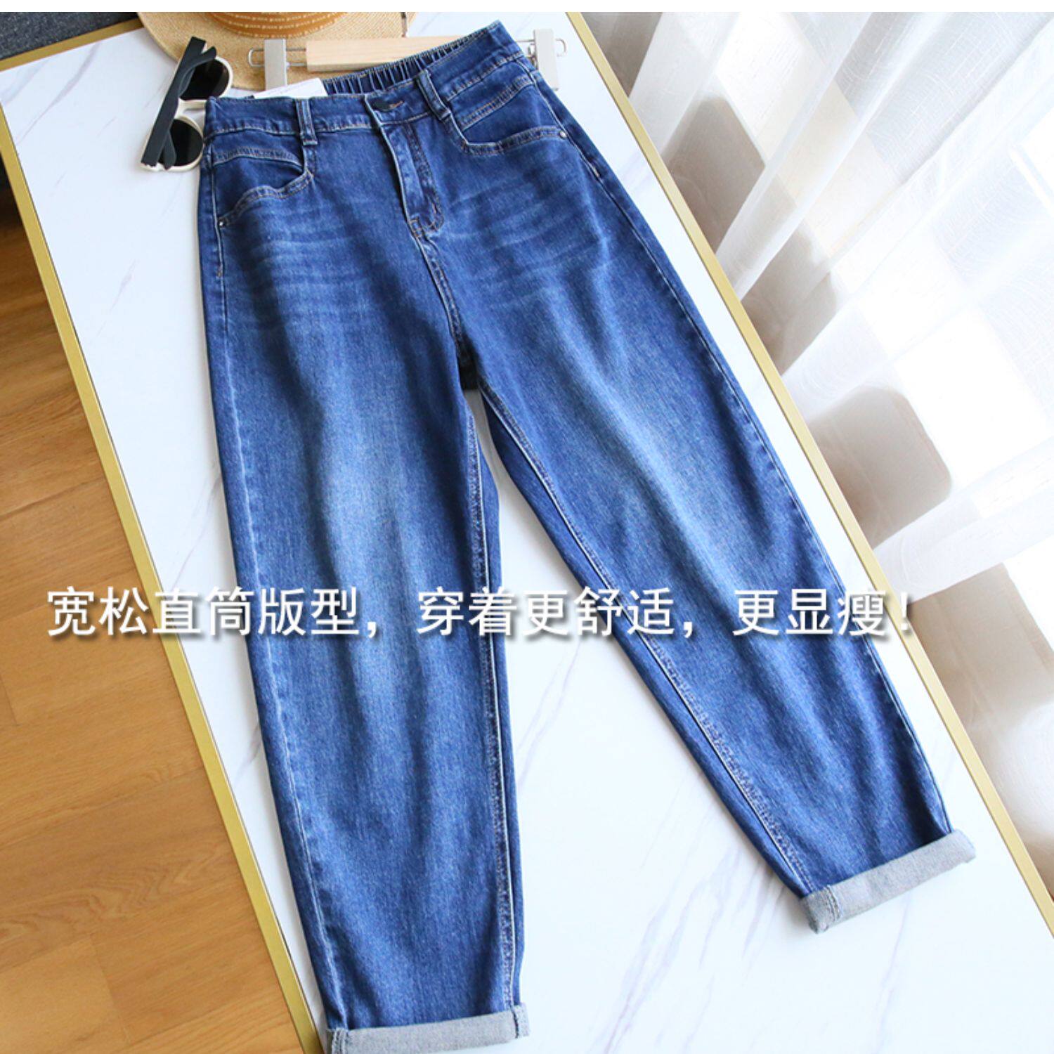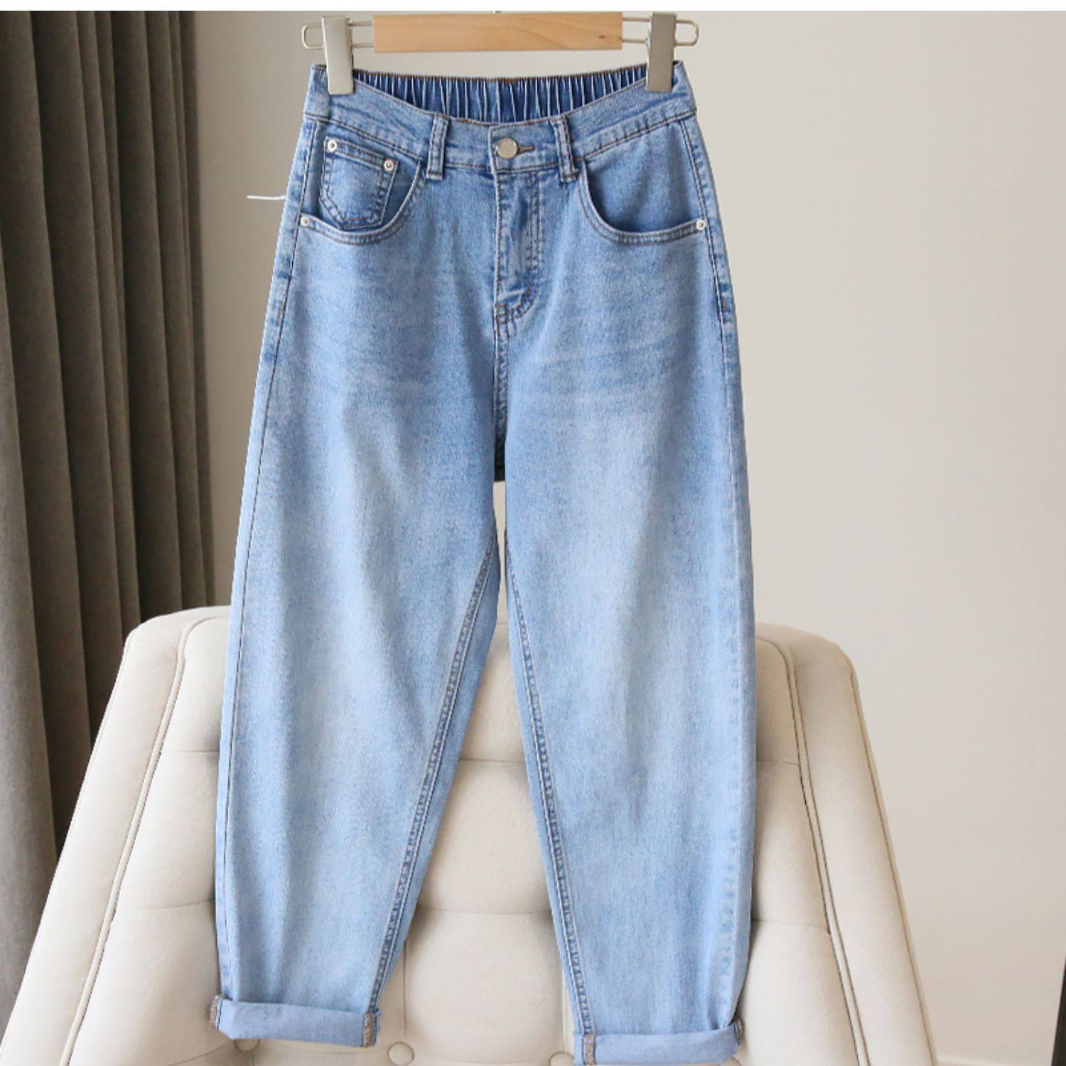 Plus Size Women's Jeans 2025 New High-Waisted Loose Straight Slimming Elastic Waist Cropped Harem Pants