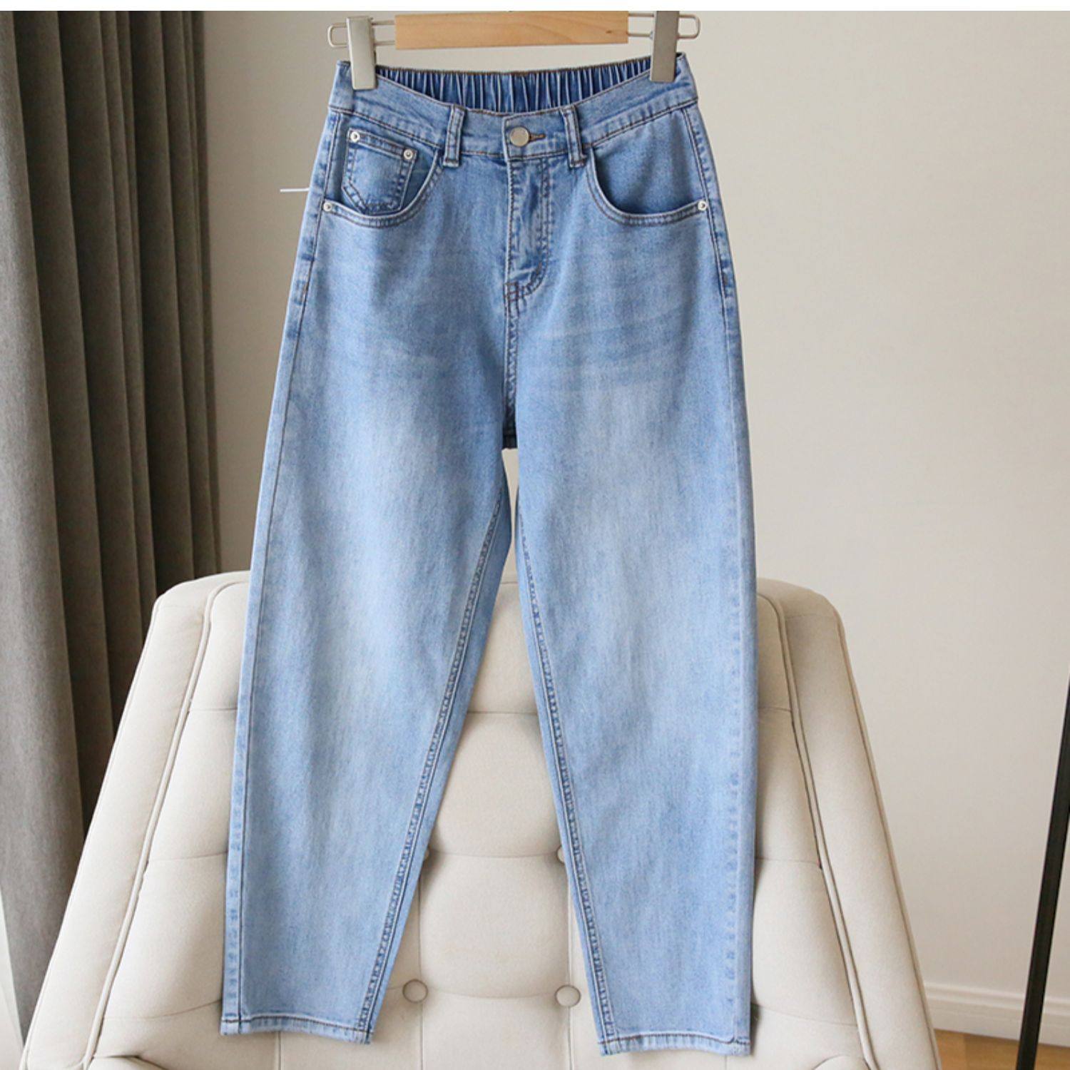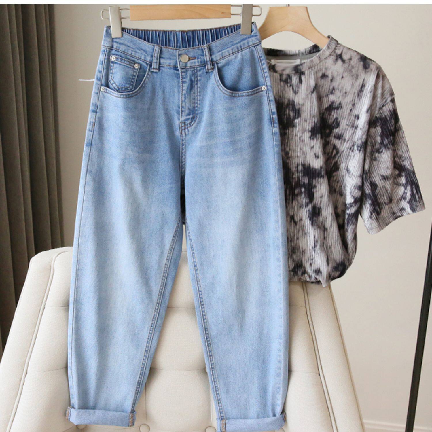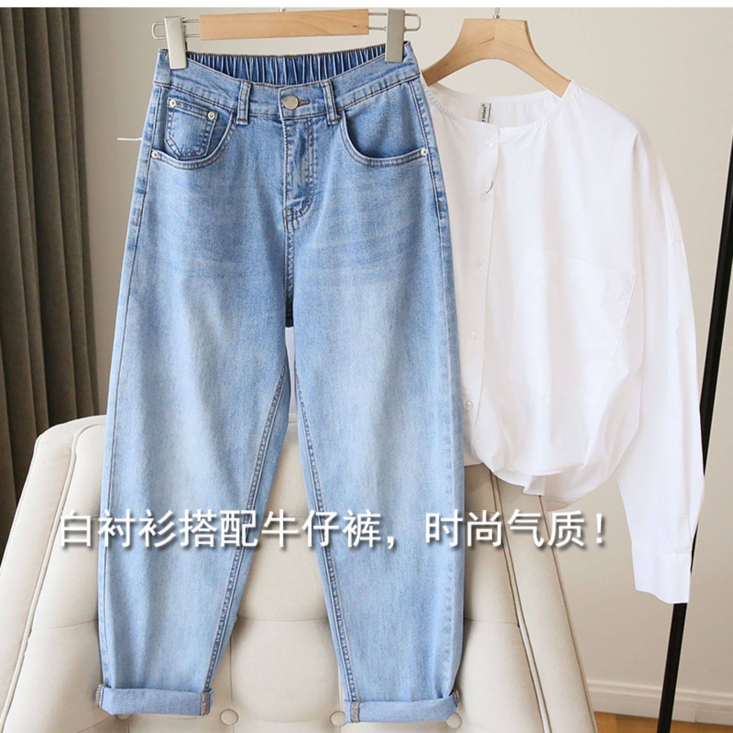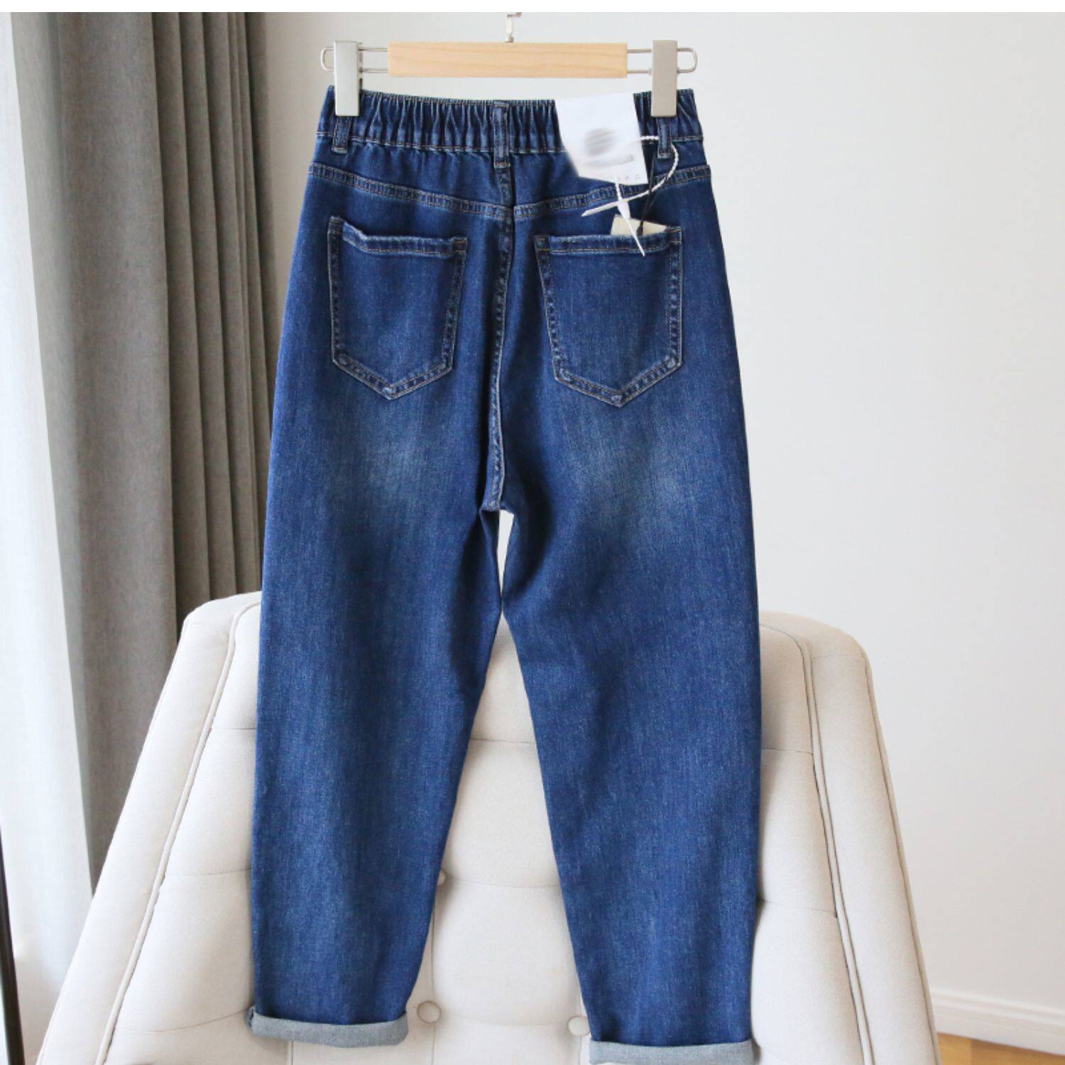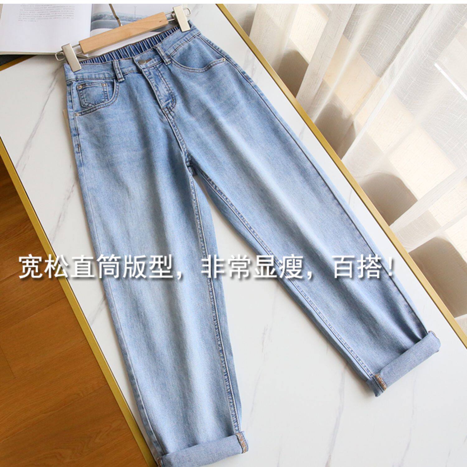 Plus Size Women's Jeans 2025 New High-Waisted Loose Straight Slimming Elastic Waist Cropped Harem Pants