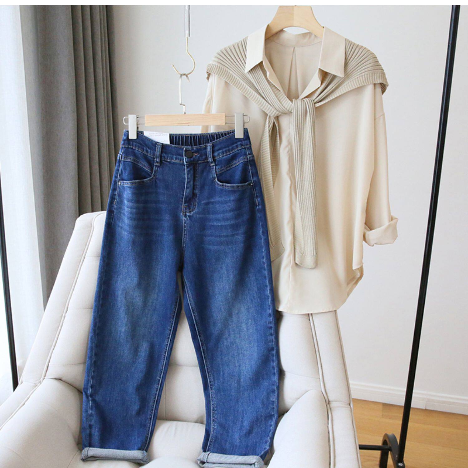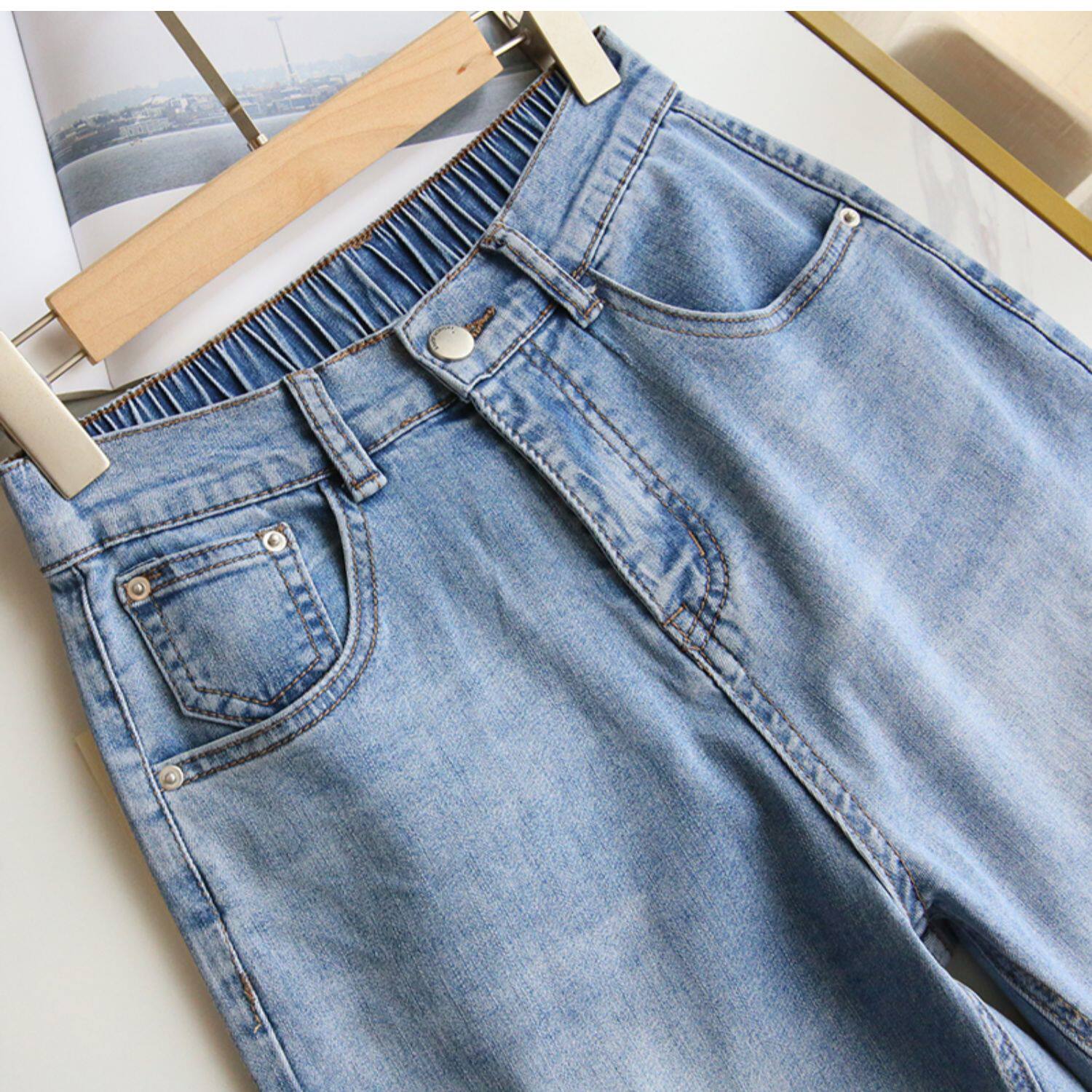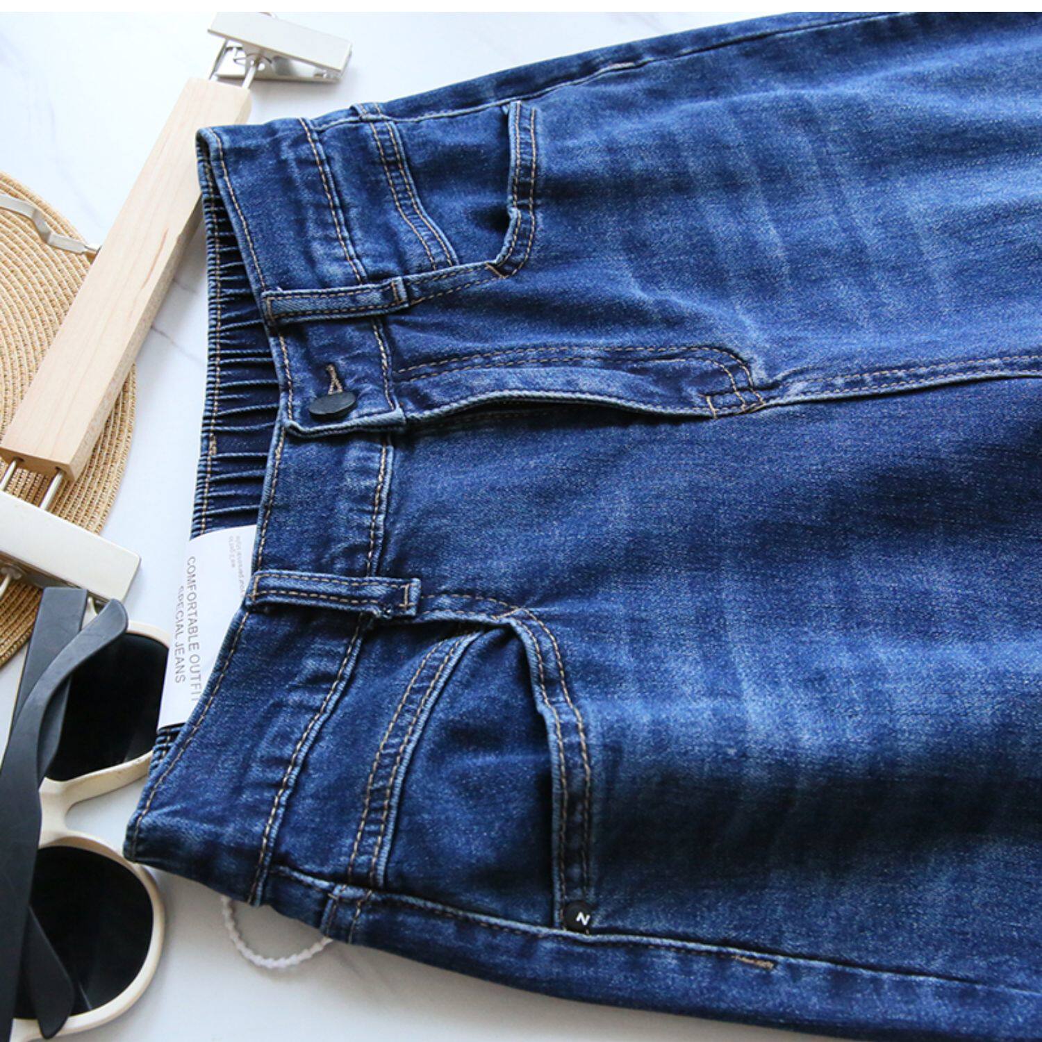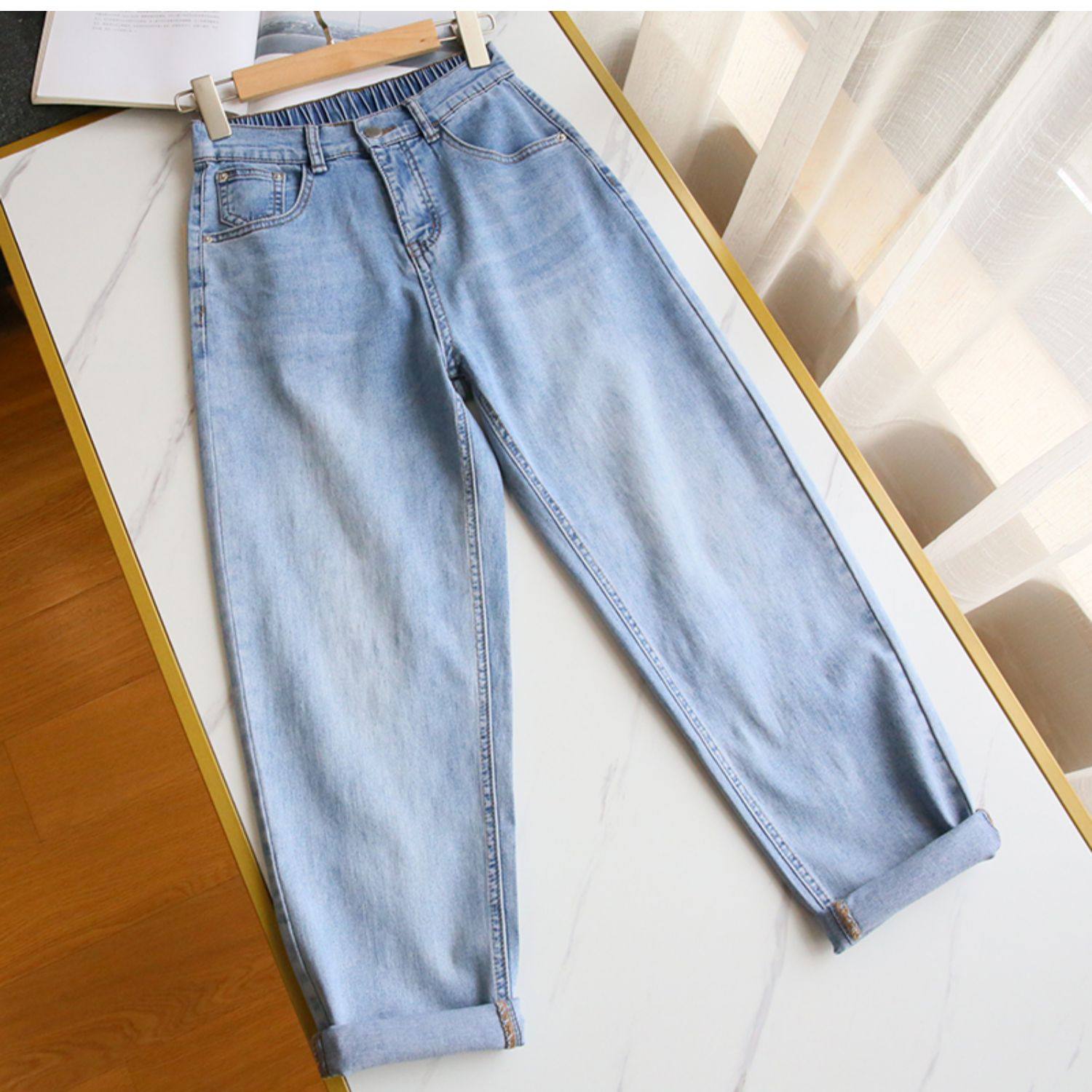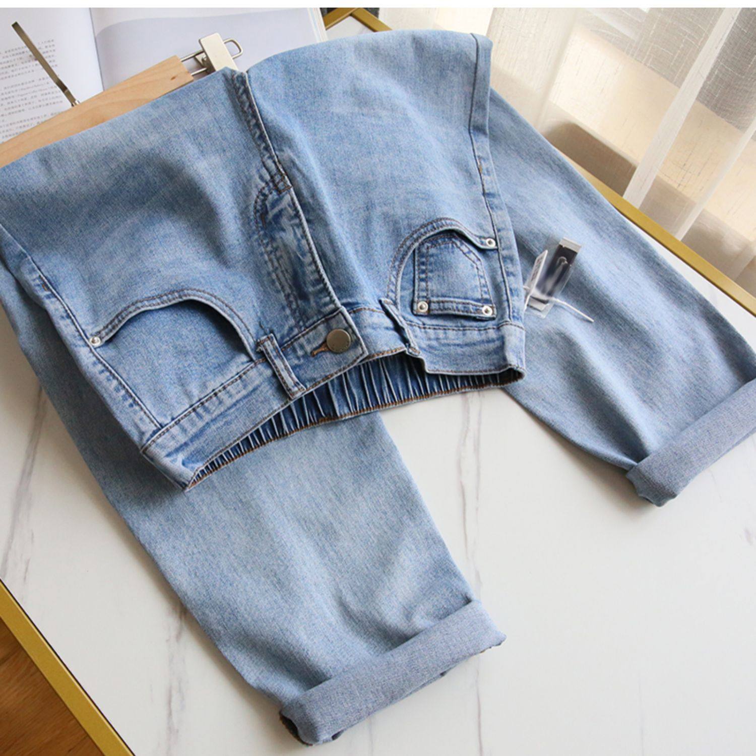 Plus Size Women's Jeans 2025 New High-Waisted Loose Straight Slimming Elastic Waist Cropped Harem Pants