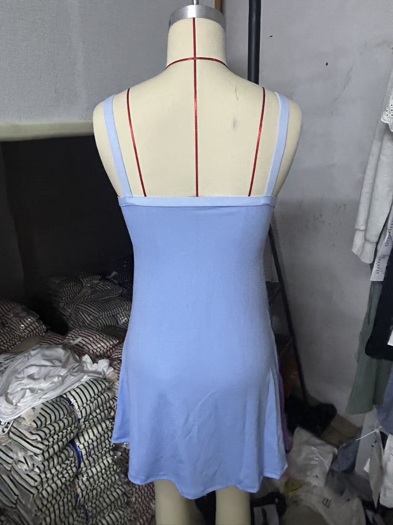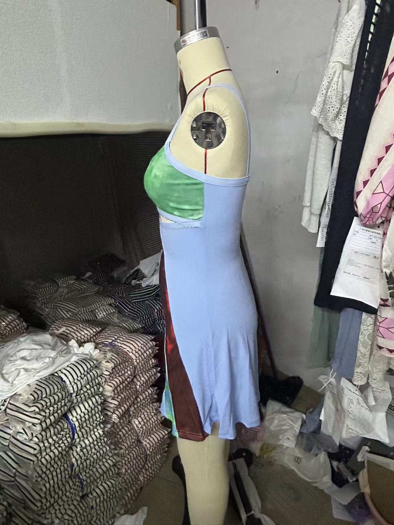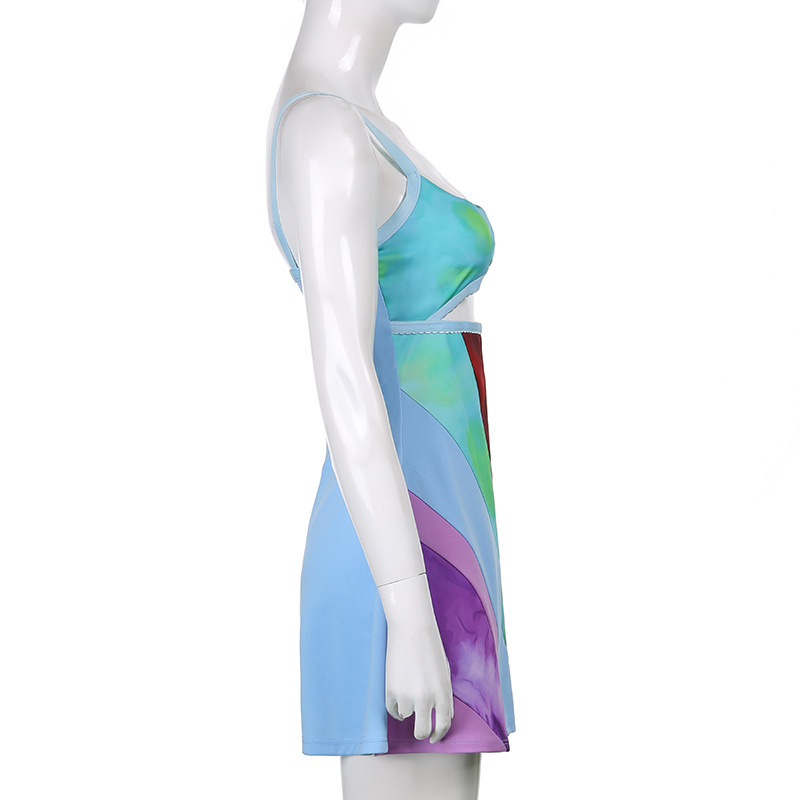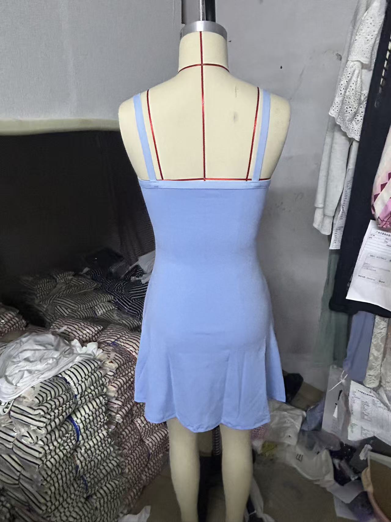 Cross-border 2023 Summer European and American Fashion Backless Skirt Sexy U-collar Chest Color-matching Hollow A- line Dress for Women