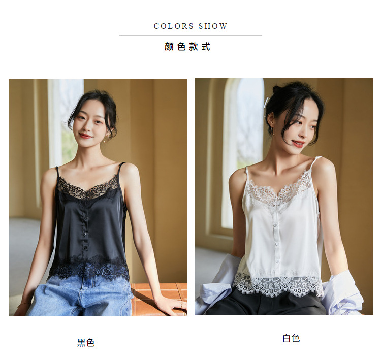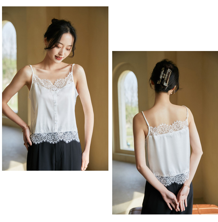 French Style Lace Camisole Women's Summer Suit Loose Inner Base Acetic Acid Satin Outer Wear Top