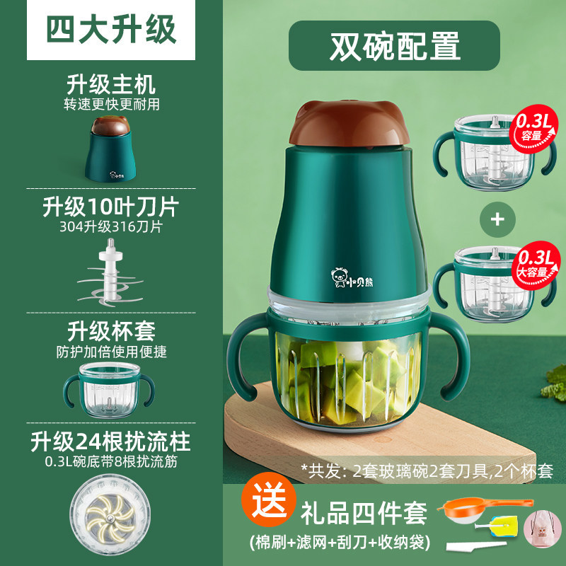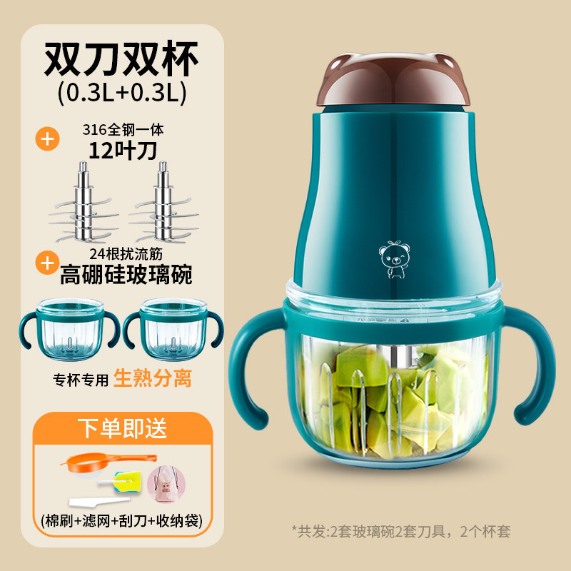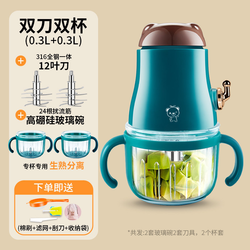 Upgraded double cup blender (8-blade, 2 sets) - emerald green