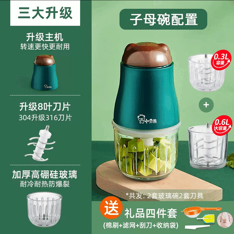 Upgraded mother-child cup set (8-blade knife, 2 sets) + emerald green