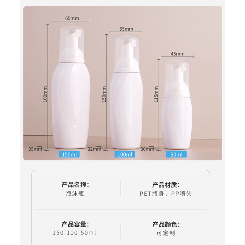 Customized Facial Cleanser Bottle, Mousse Foam Bottle, Foaming Bottle, 50ml, 100ml, 150ml, Cosmetic Packaging Material, Sub-Bottling