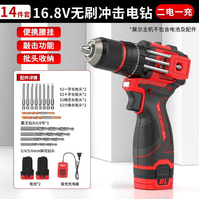16.8v two-speed electric drill [one battery, one charge] + 14-piece set of drill bits