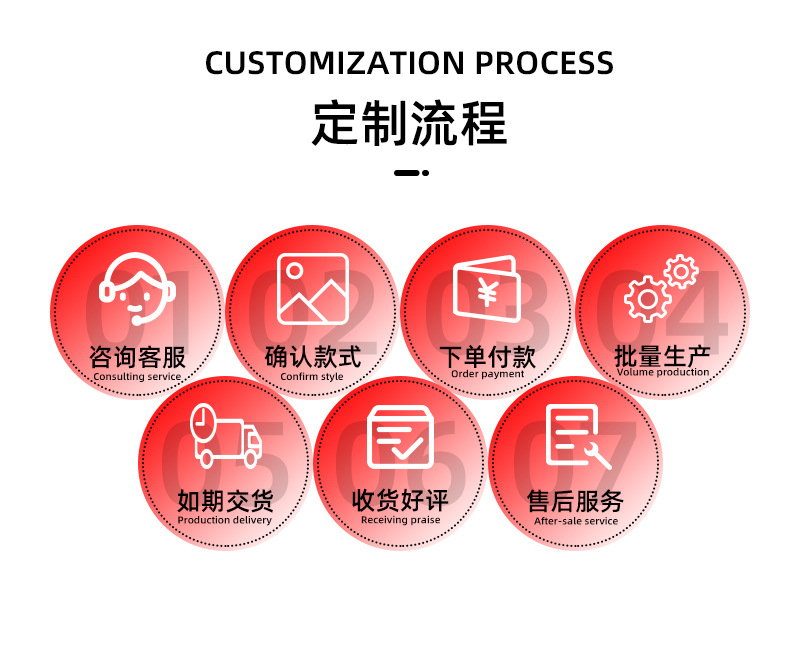 别担心,我们可以提供全套定制服务:定制款式、尺寸、形状、厚度、颜色、丝印、贴标、外包装盒、