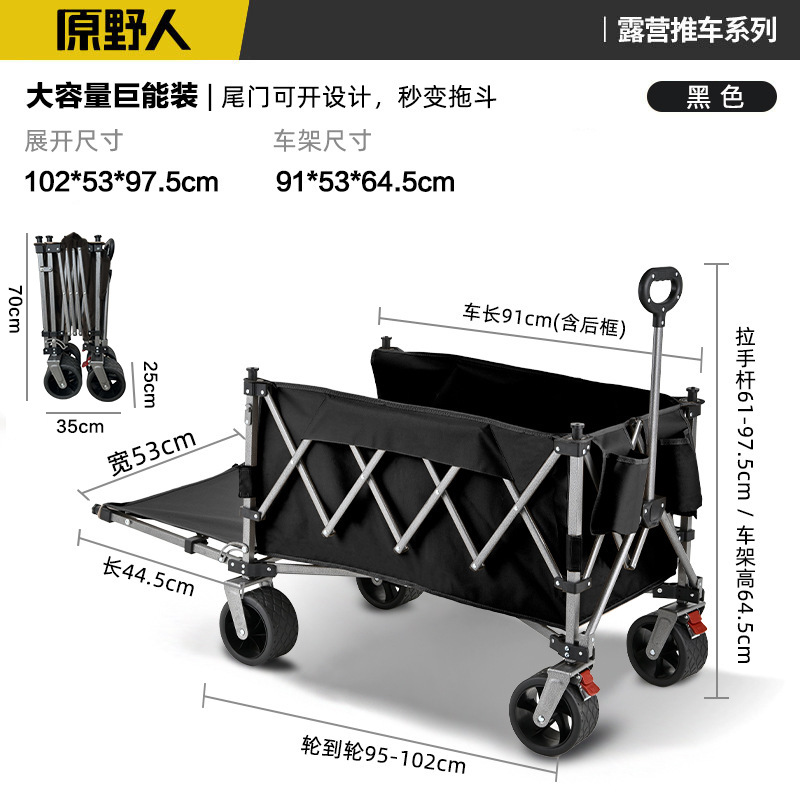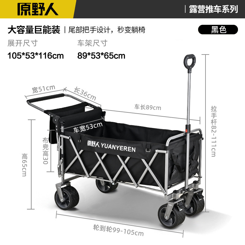 【push-pull cart - black】all-terrain swivel wheels + extended cargo bed for increased capacity