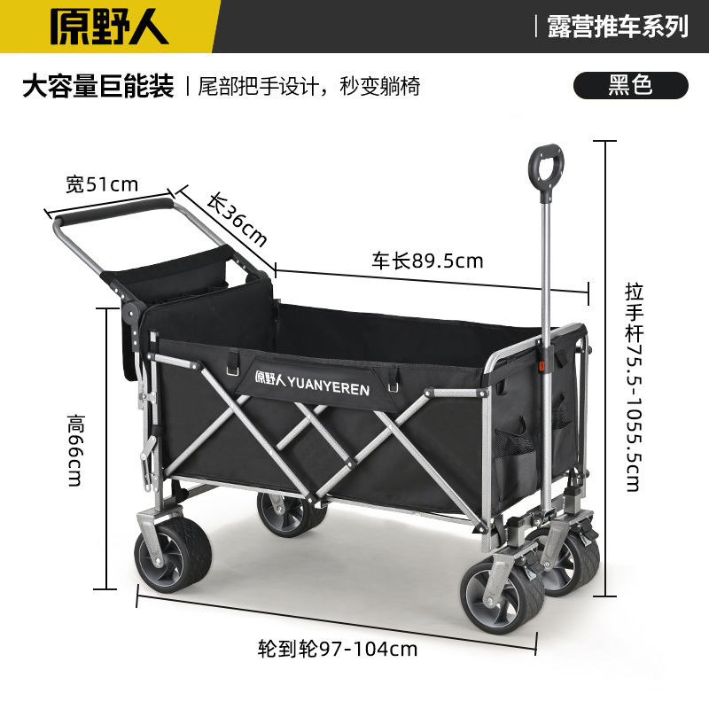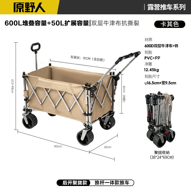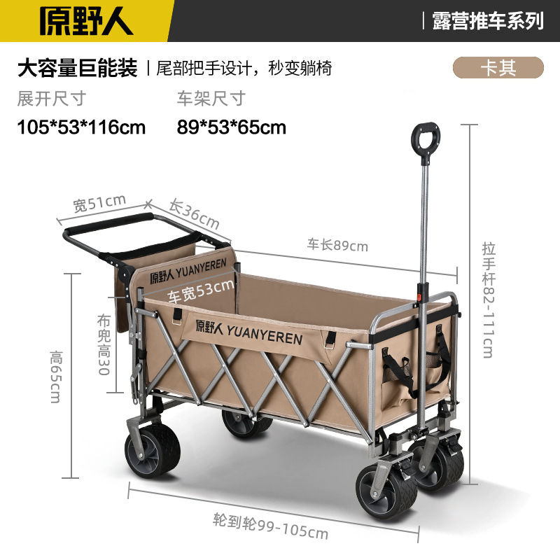 【push-pull cart - khaki】all-terrain swivel wheels + extended storage compartment