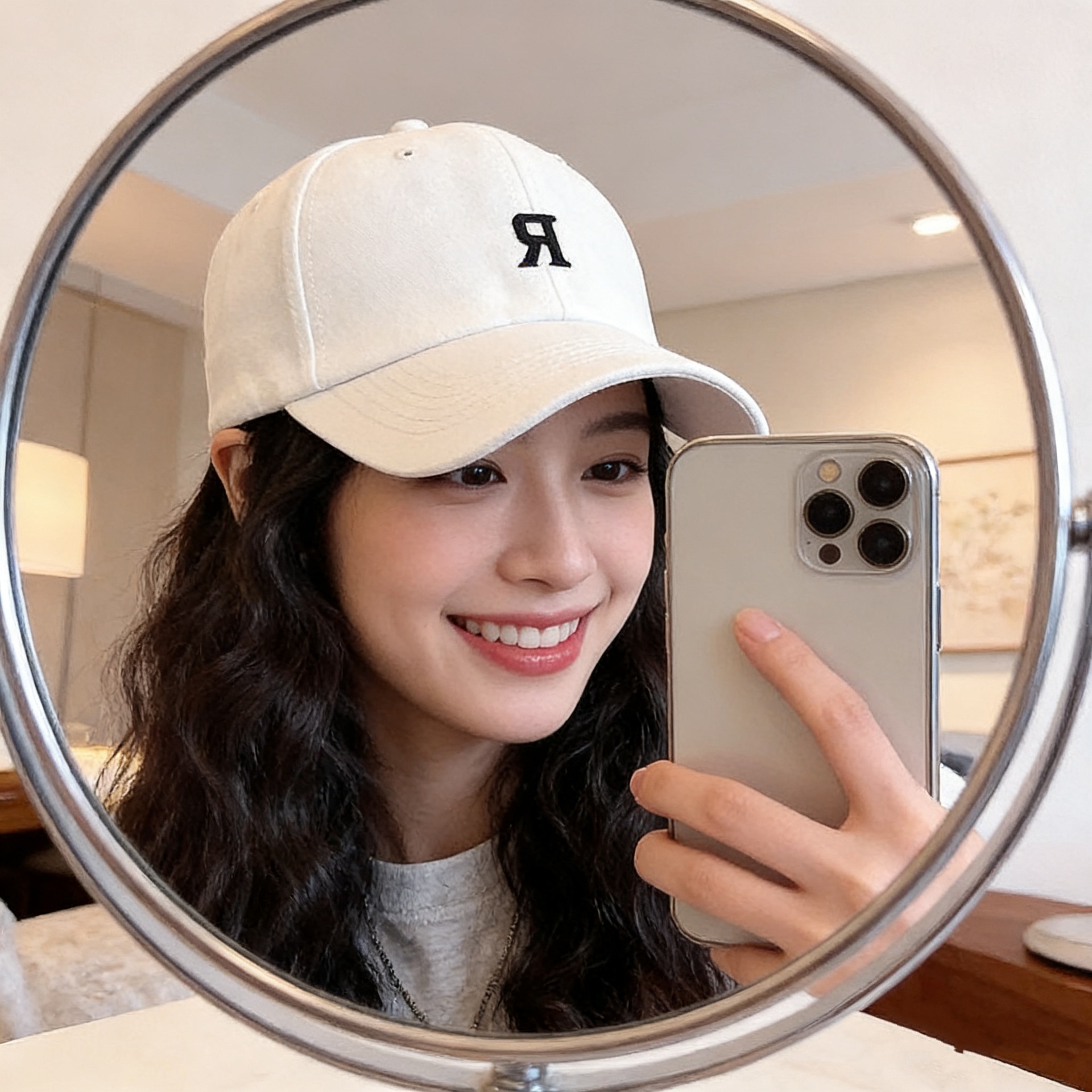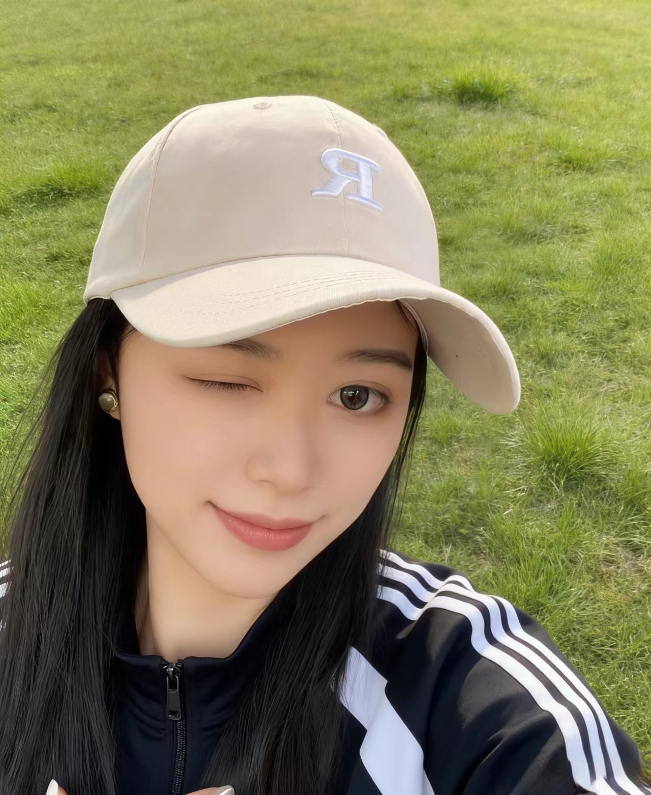 R Letter Baseball Cap-Beige