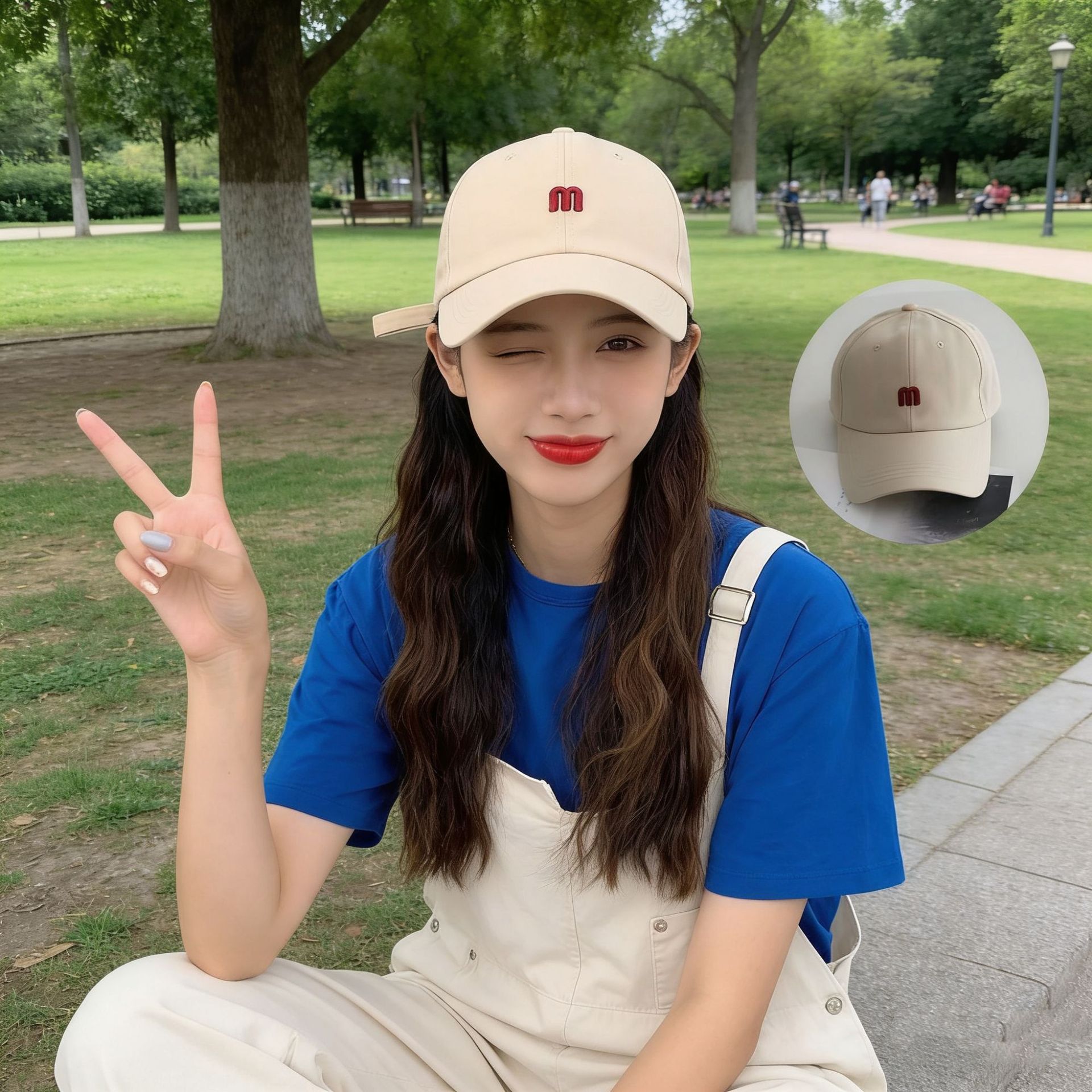 M letter baseball cap-beige
