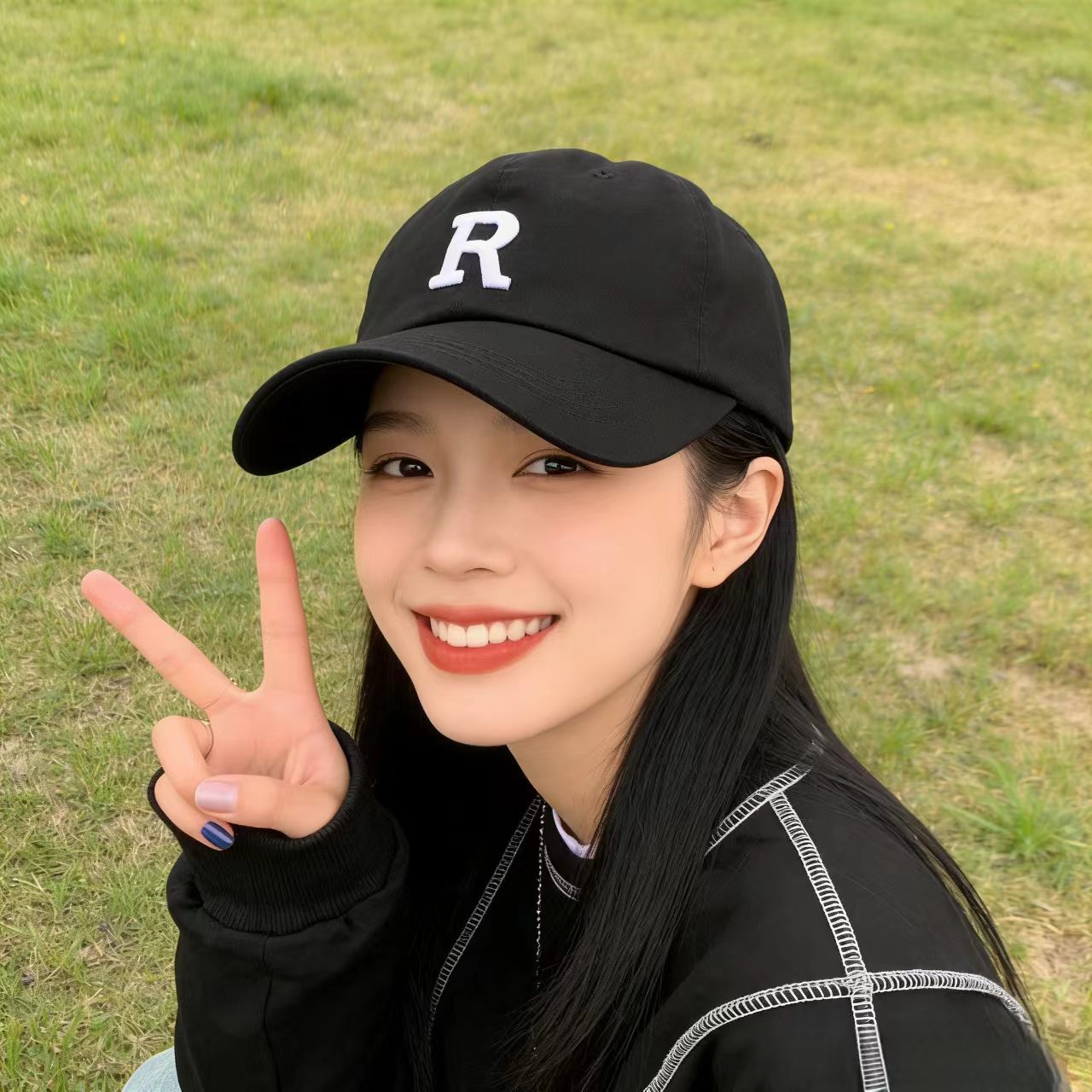 R Letter Baseball Cap-Black