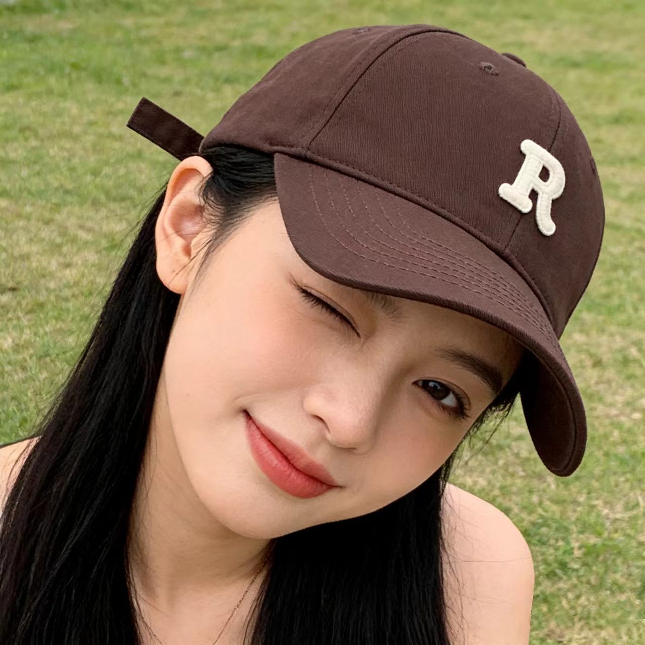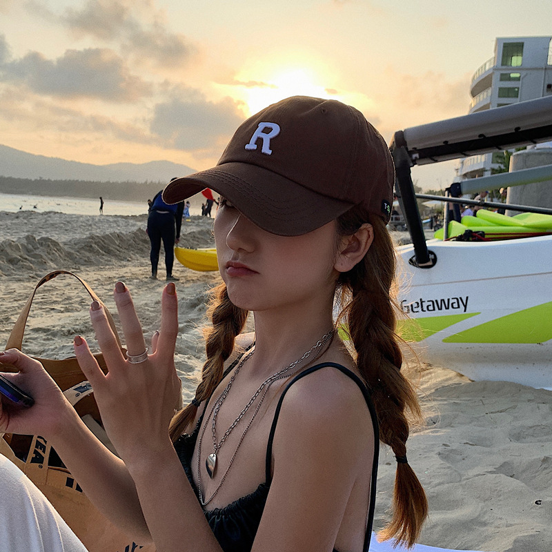 R letter baseball cap-brown