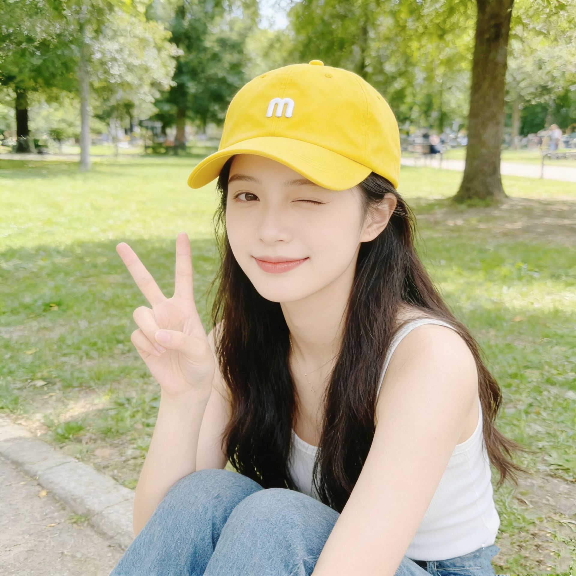 M Letter Baseball Cap-Bright Yellow