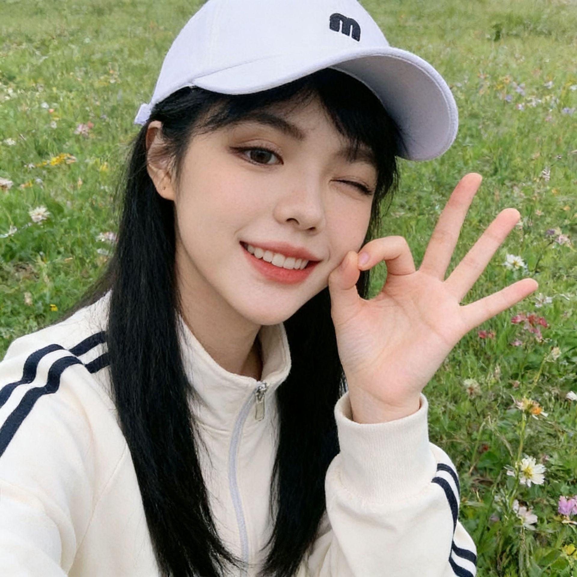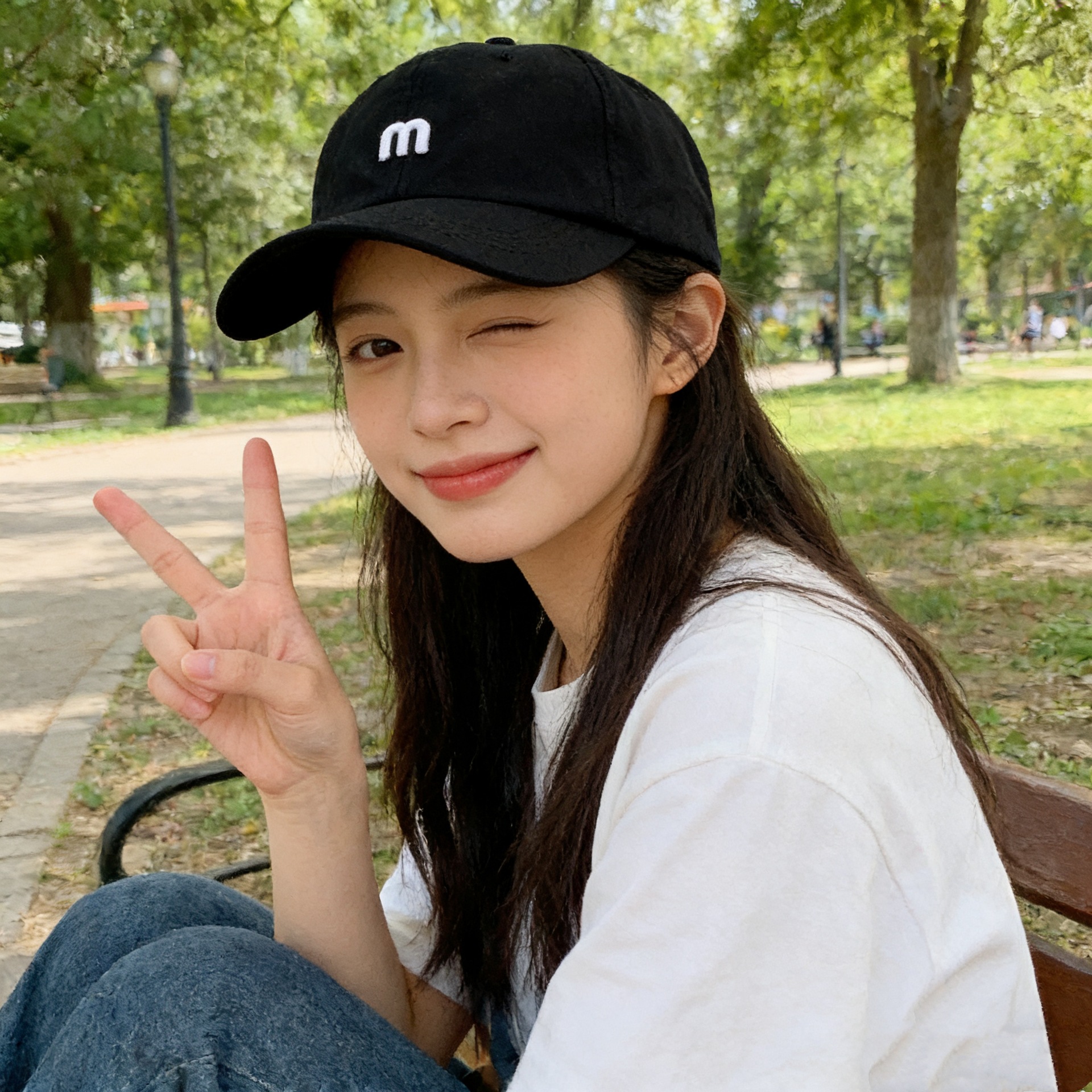 M Letter Baseball Cap-White