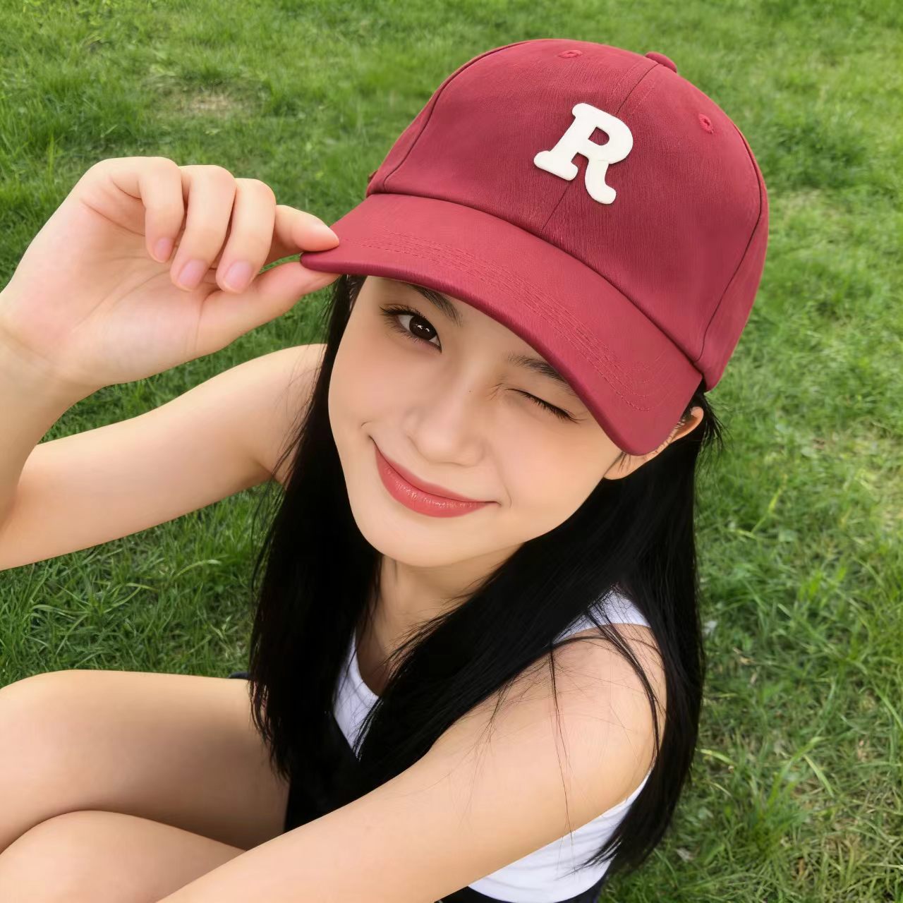 R letter baseball cap-wine red