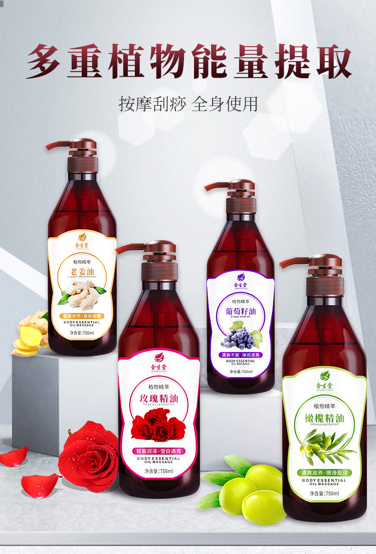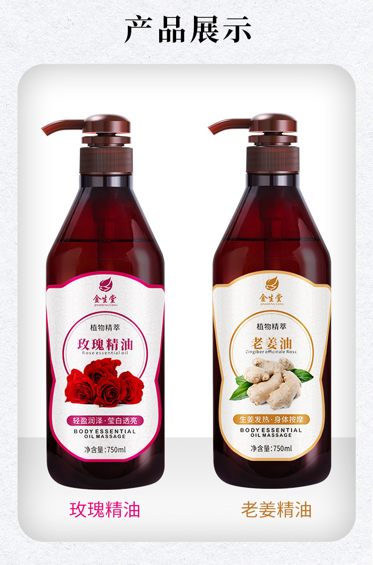 Rose Massage Essential Oil, Whole Body Dredging Meridians Massage Oil, Ginger Grape Seed Base Oil, Beauty Salon Special Wholesale