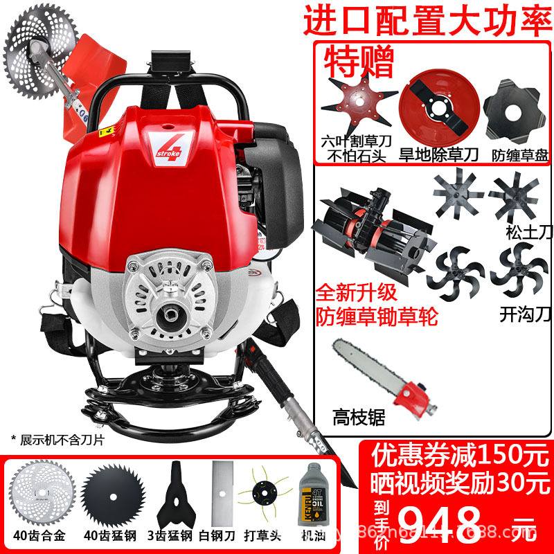 [150 models] [four-stroke backpack] [mowing package + weeding and loosening soil ditching wheel + high branch saw]]