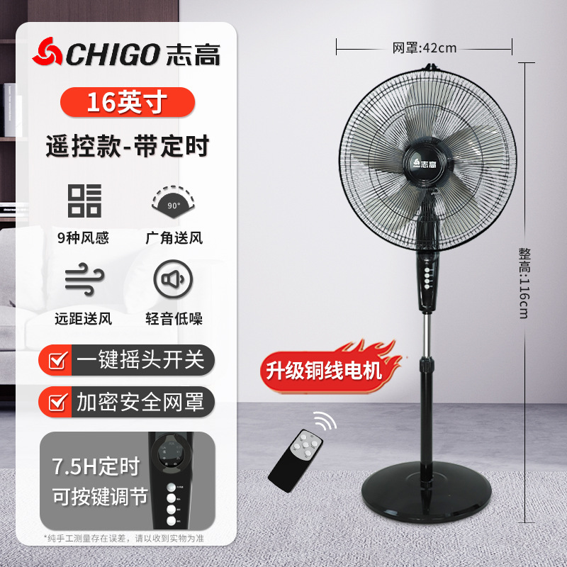 16-inch [remote control] copper wire-with timing -9 kinds of wind sense-encrypted net cover-five-year warranty