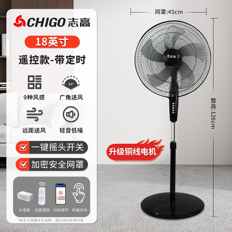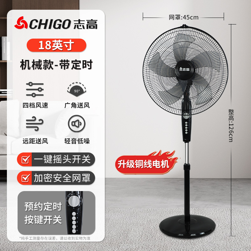 18-inch [mechanical] copper wire-with timing-four-speed speed regulation-encryption net cover-extended power cord-five-year warranty